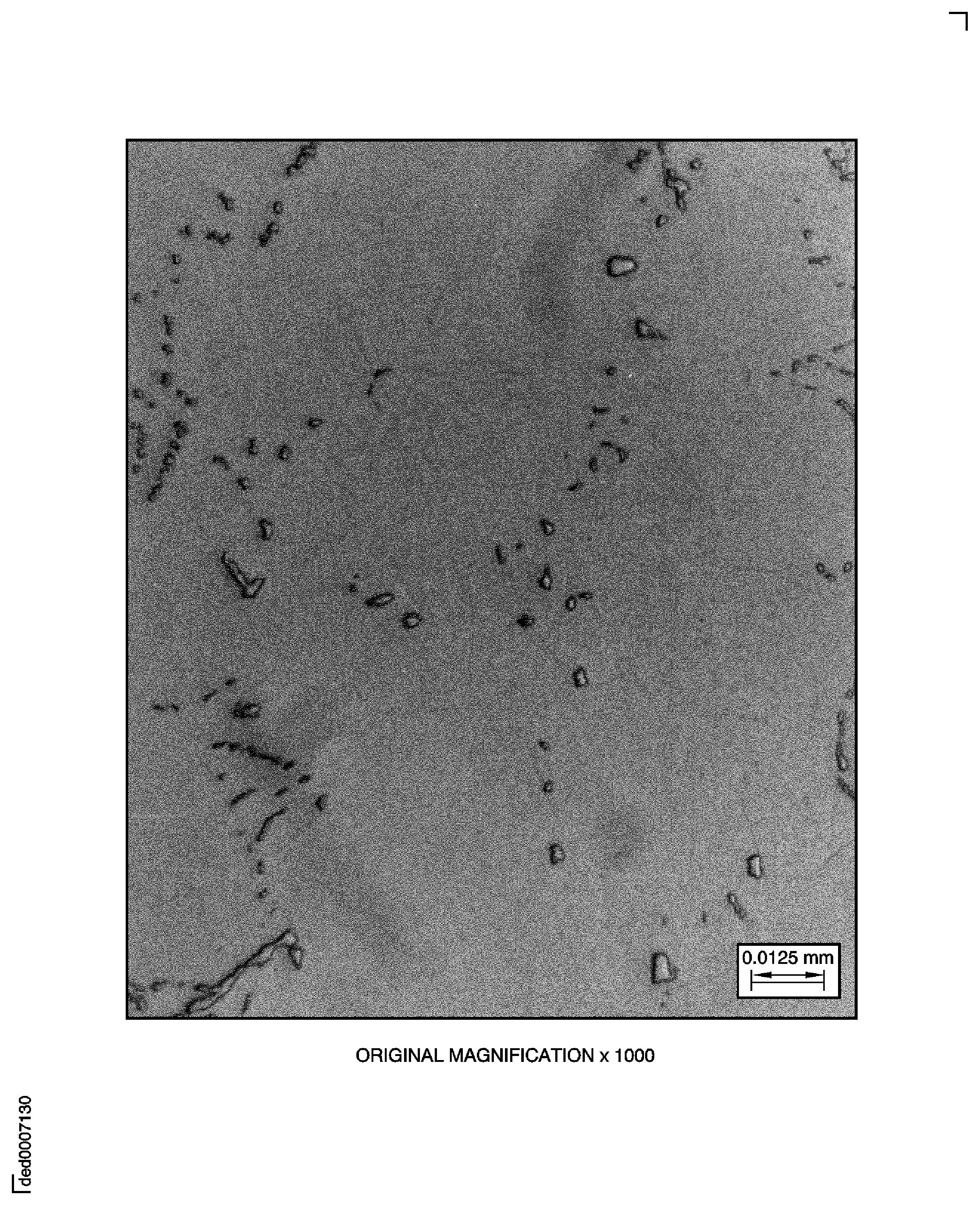A metal temperature between 2050 and 2100 deg F (1121 and 1149 deg C) causes decomposition (solutioning) of the precipitate. The extent of the decomposition of the precipitate increases with increased temperature. The result is a decrease in the uniformity of the distribution of precipitate in the microstructure and an increase in the interparticle spacing. See Figure and Figure.