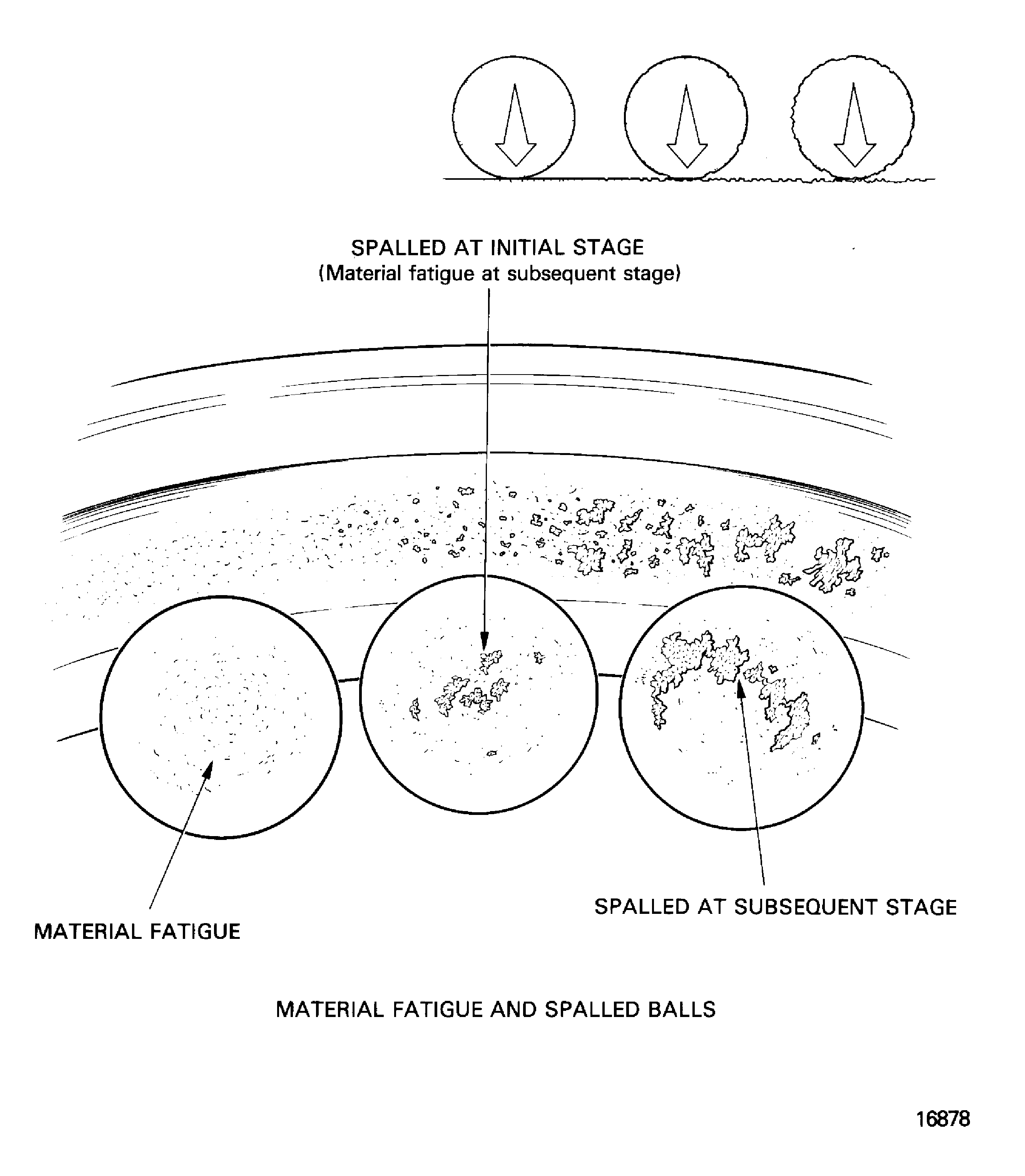 Material fatigue is not unusual and can occur in all anti-friction bearings. All bearings that turn, with a load applied, have a specified life. This life is related to the number of turns and the load applied. A bearing becomes unserviceable when its raceways and/or parts that turn become damaged, because of material fatigue. Fatigue damage usually starts as small cracks below the surface. As the load increases the cracks become larger until they get to the surface where the material becomes peeled.