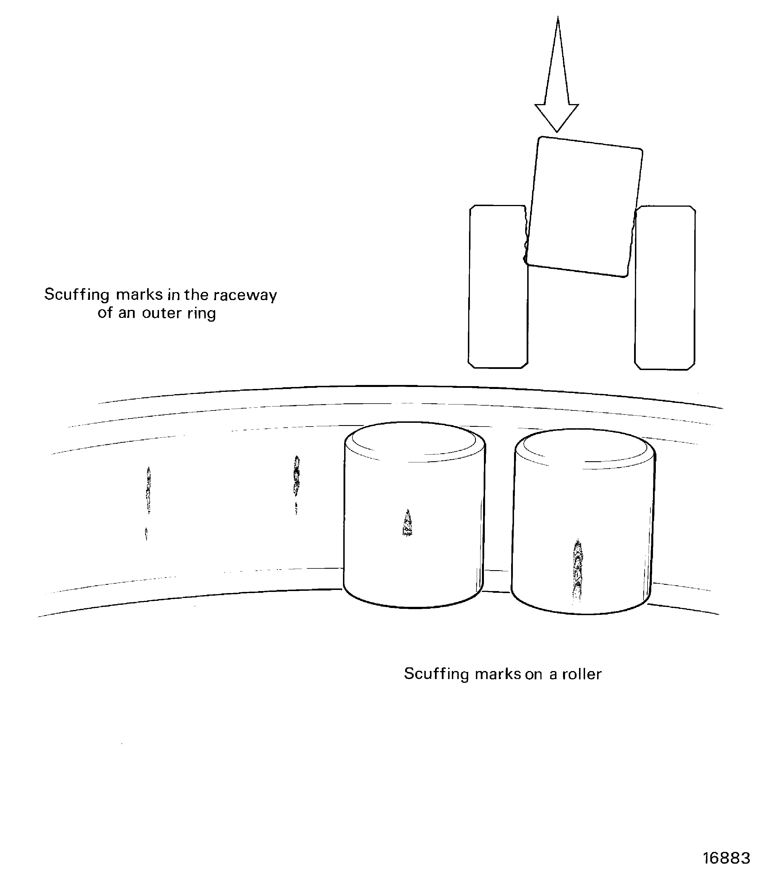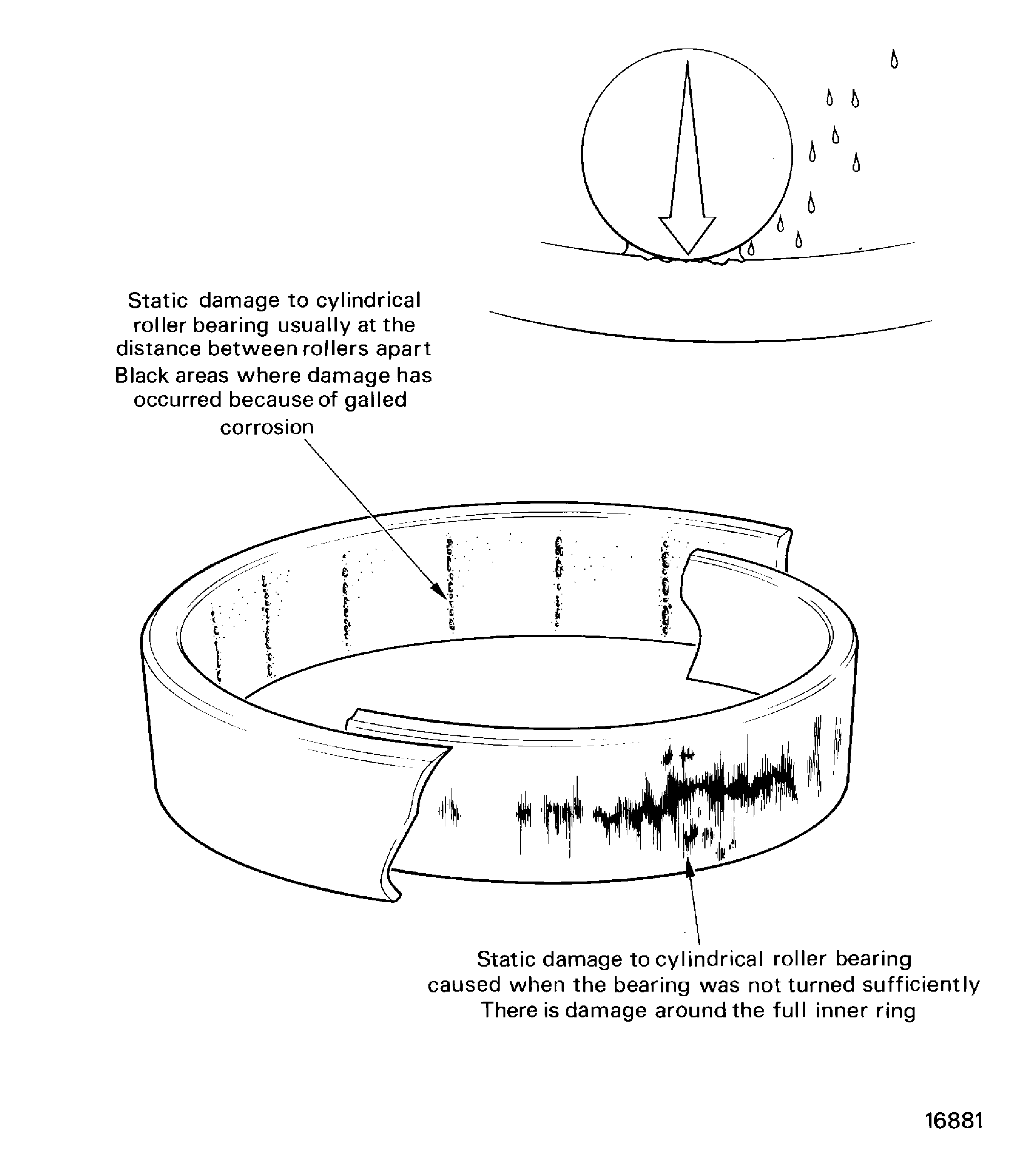 Cause - Continuous vibrations when the bearing is topped which make ball or roller marks on the raceway surfaces. False brinelling only occurs when the engine is stopped and frequently results from vibration when the engine is being moved.