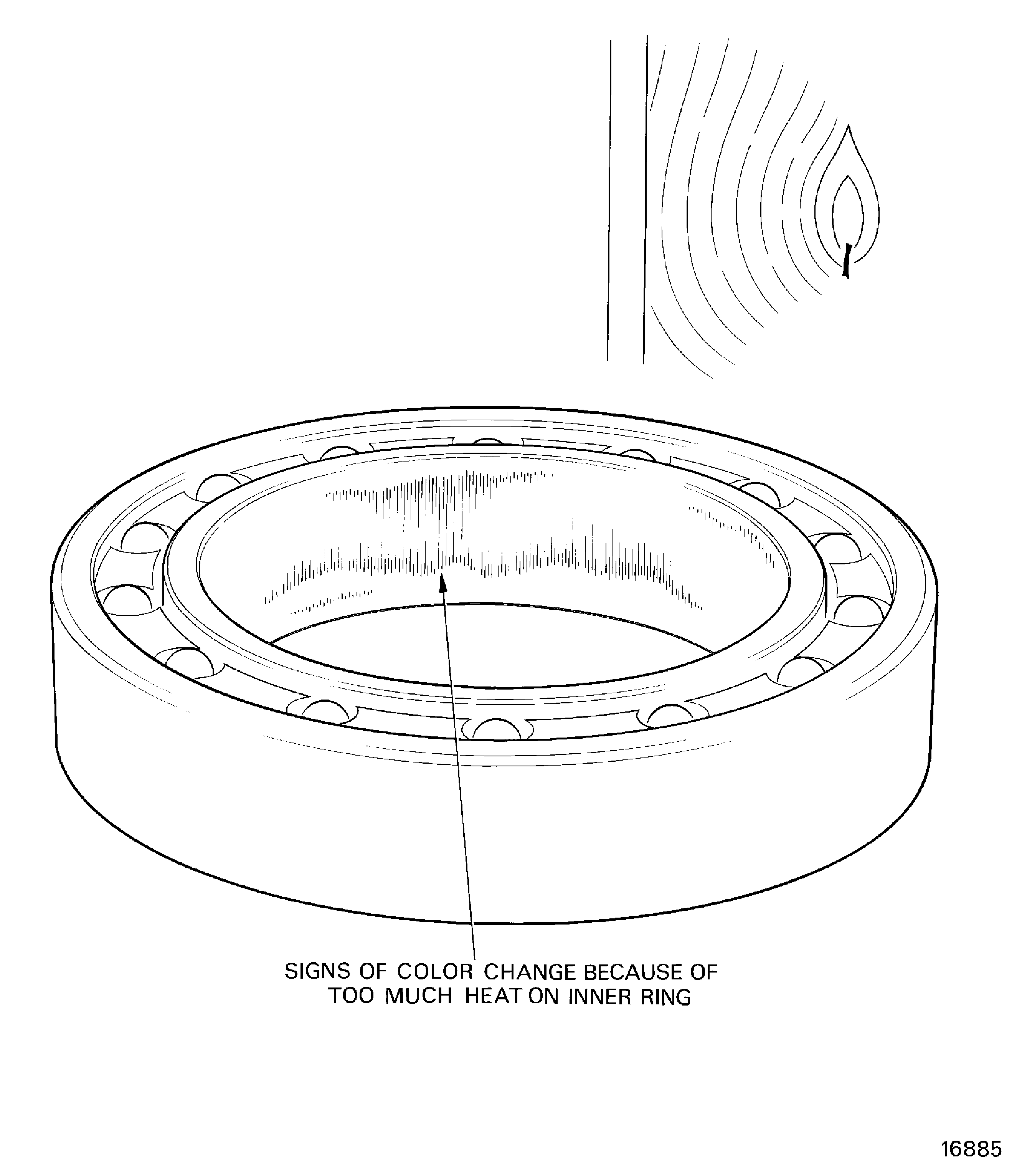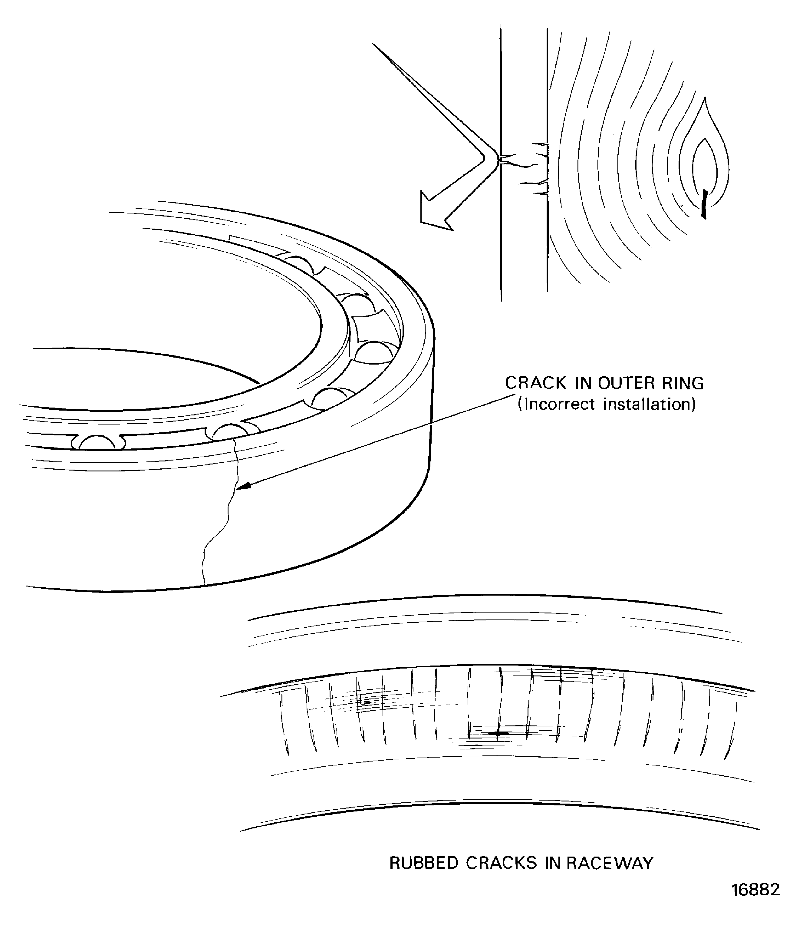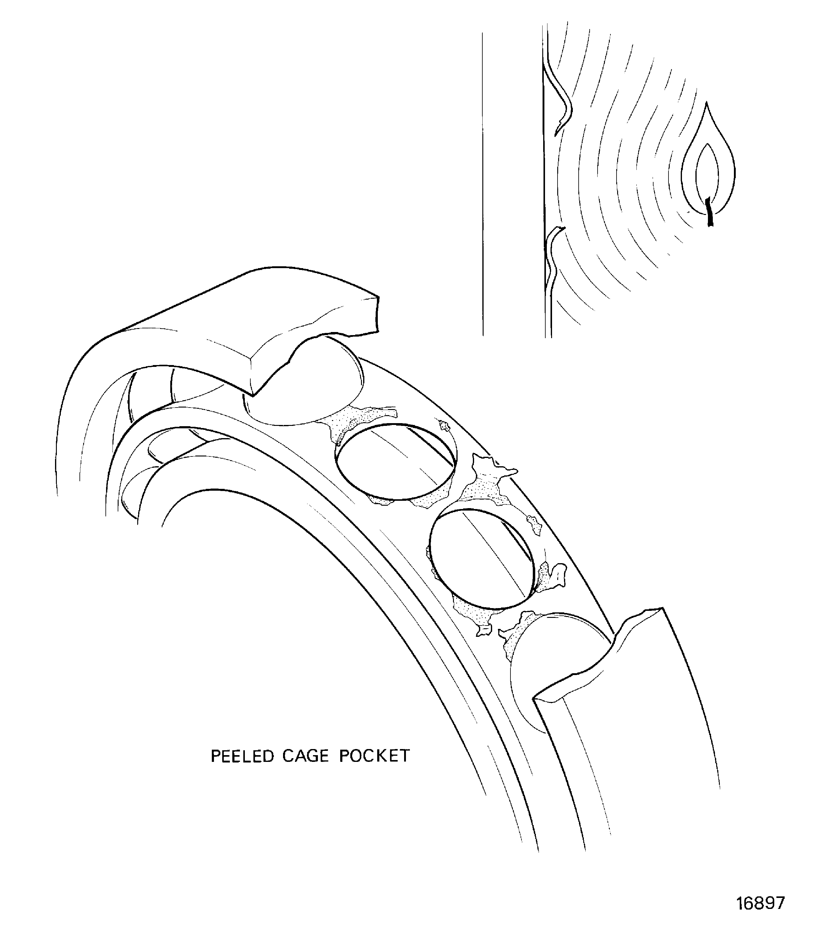 Damage to the material continues as the peeled particles get into the bearing raceways which then becomes very hot. The condition of the bearing then becomes worse, it runs rough and makes a noise. If the bearing continues to run, all the components will become badly damaged. Raceways can then become ruptured because there is no internal radial clearance.