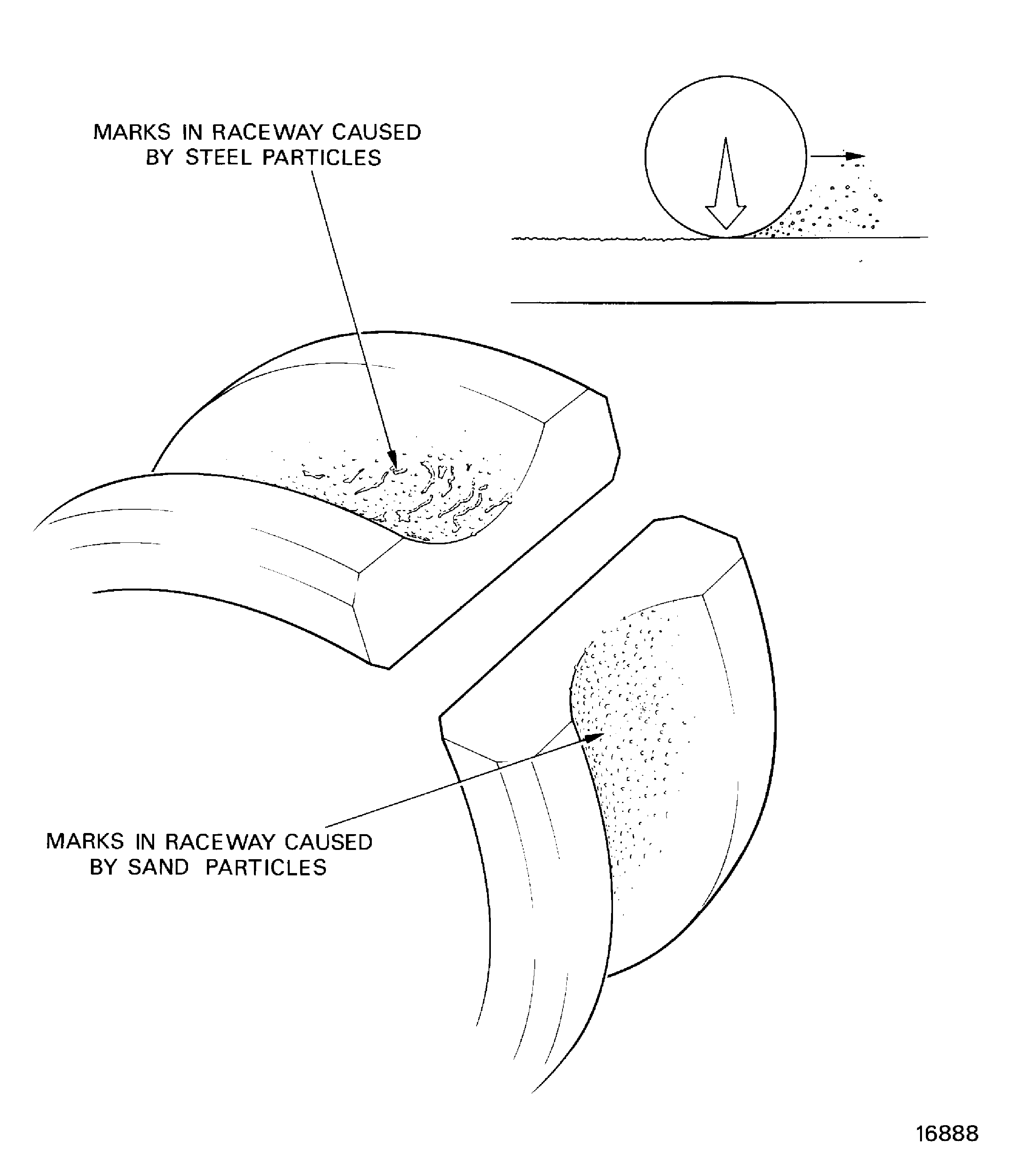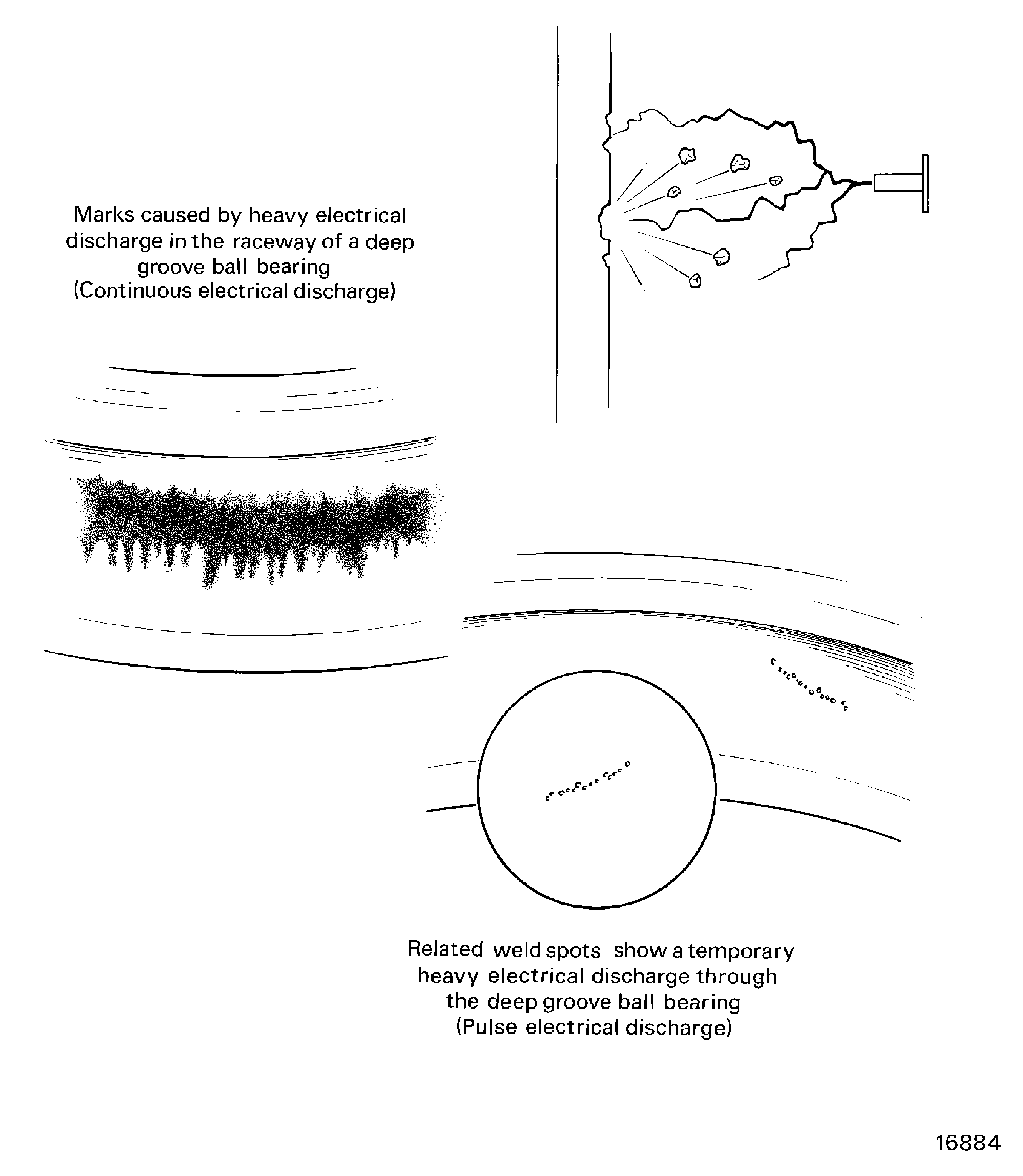 The raceways of anti-friction bearings can be found to have small irregular contours which usually look almost the same as the adjacent area. Usually they are only seen because of the light reflections caused by changes to the surface. Bearings with such damage usually run rough and make a noise. In general, there are two possible causes for such damage.