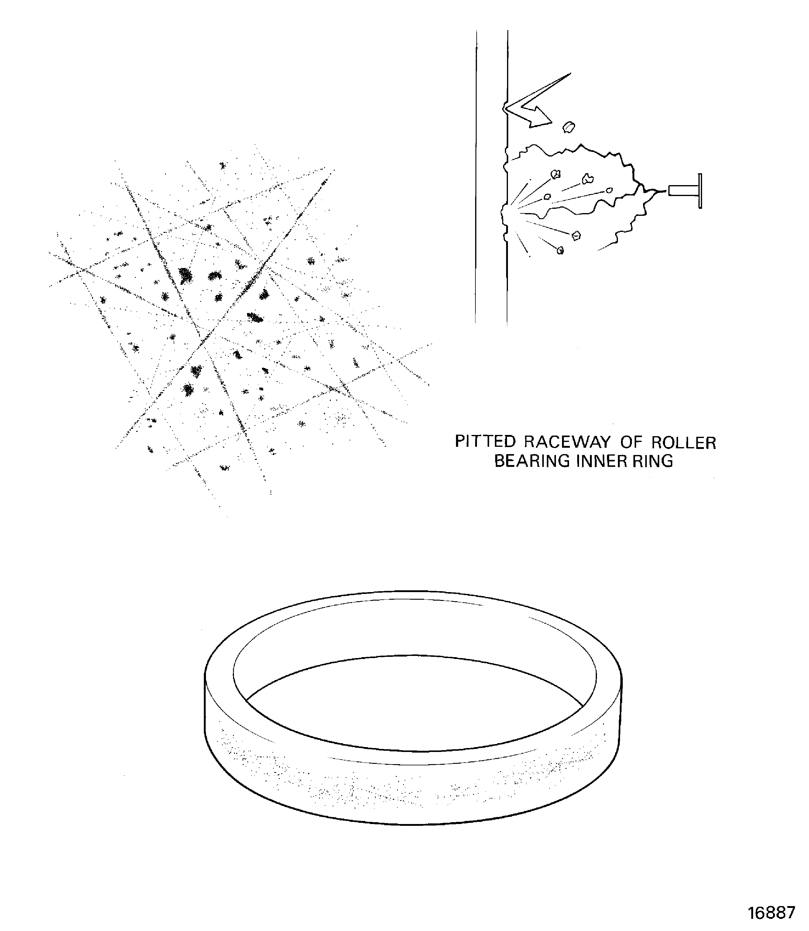 ALWAYS MAKE SURE THAT THE SYMPTOMS ARE CORRECT BECAUSE FATIGUE AND PITTED SYMPTOMS ARE ALMOST THE SAME. INITIAL FATIGUE SYMPTOMS HAVE AN IRREGULAR SHAPE, WHILE PITTED SYMPTOMS USUALLY HAVE A CIRCULAR SHAPE.Fatigue break-up (or spalling), refer to Figure.