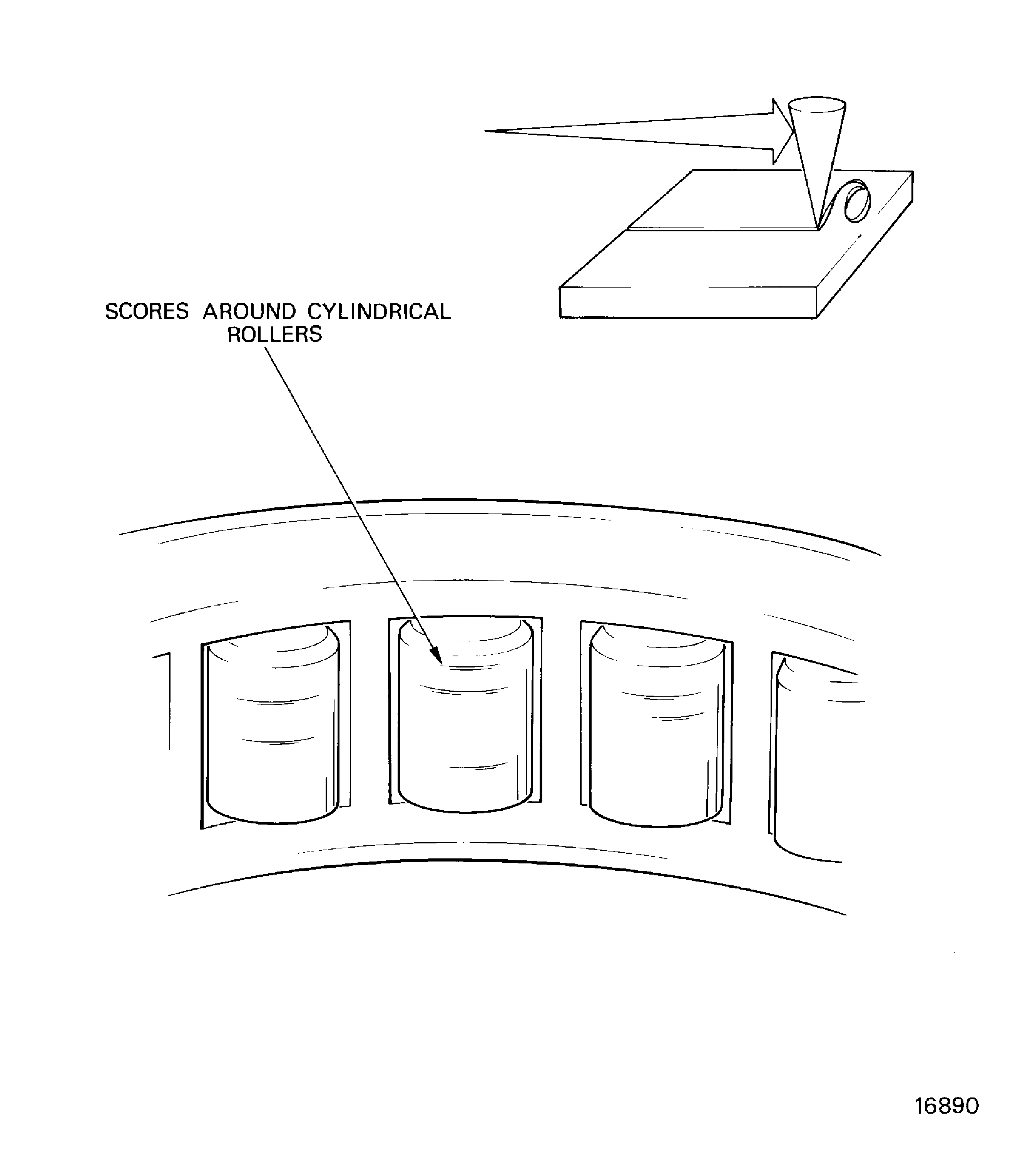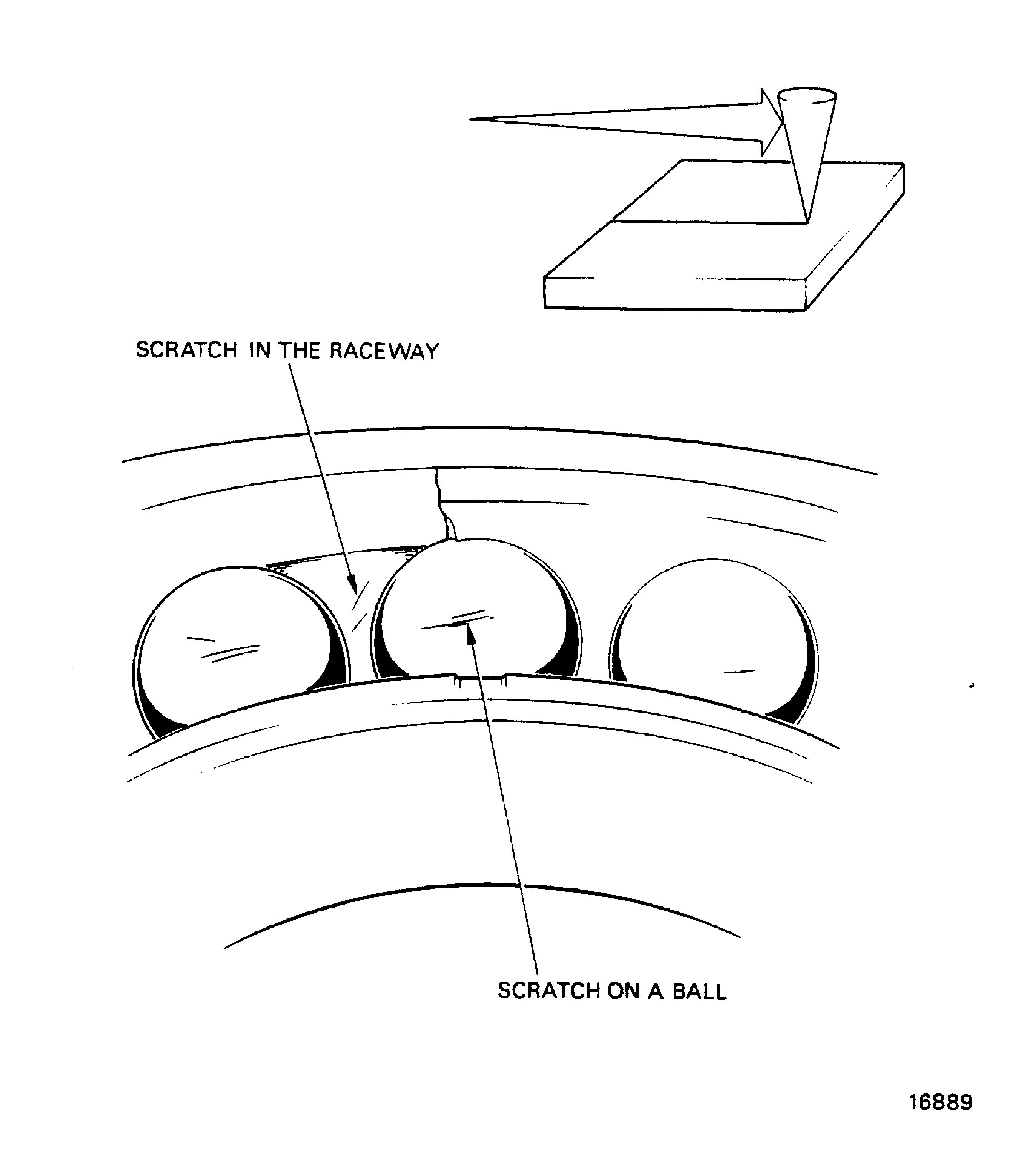 Do not remove the bands that hold the bearing together.New bearings need not be fully depreserved for an initial inspection of the ID and OD fits only. Preservative can be wiped from the ID and OD and applied again after inspection.When the use of a ball-end or radius-tip scriber is necessary lightly hold the scriber perpendicular to the base of the area. Only the weight of the scriber must be used on the surface.