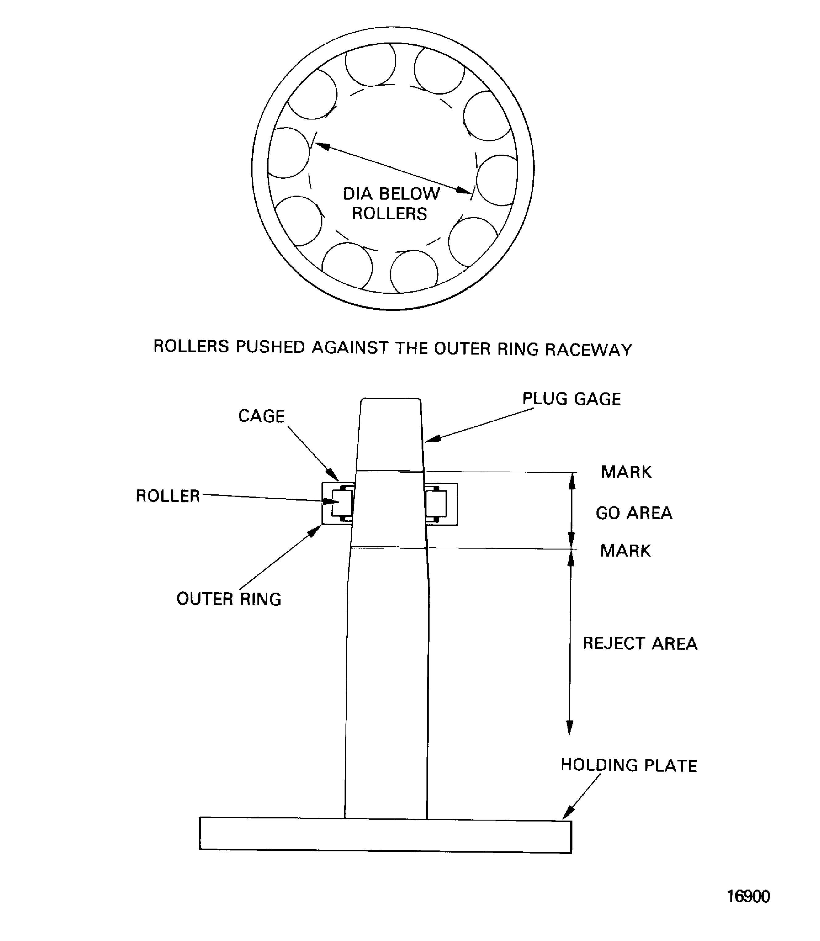 To measure the diameter below the rollers, the rollers are pushed against the outer raceway.