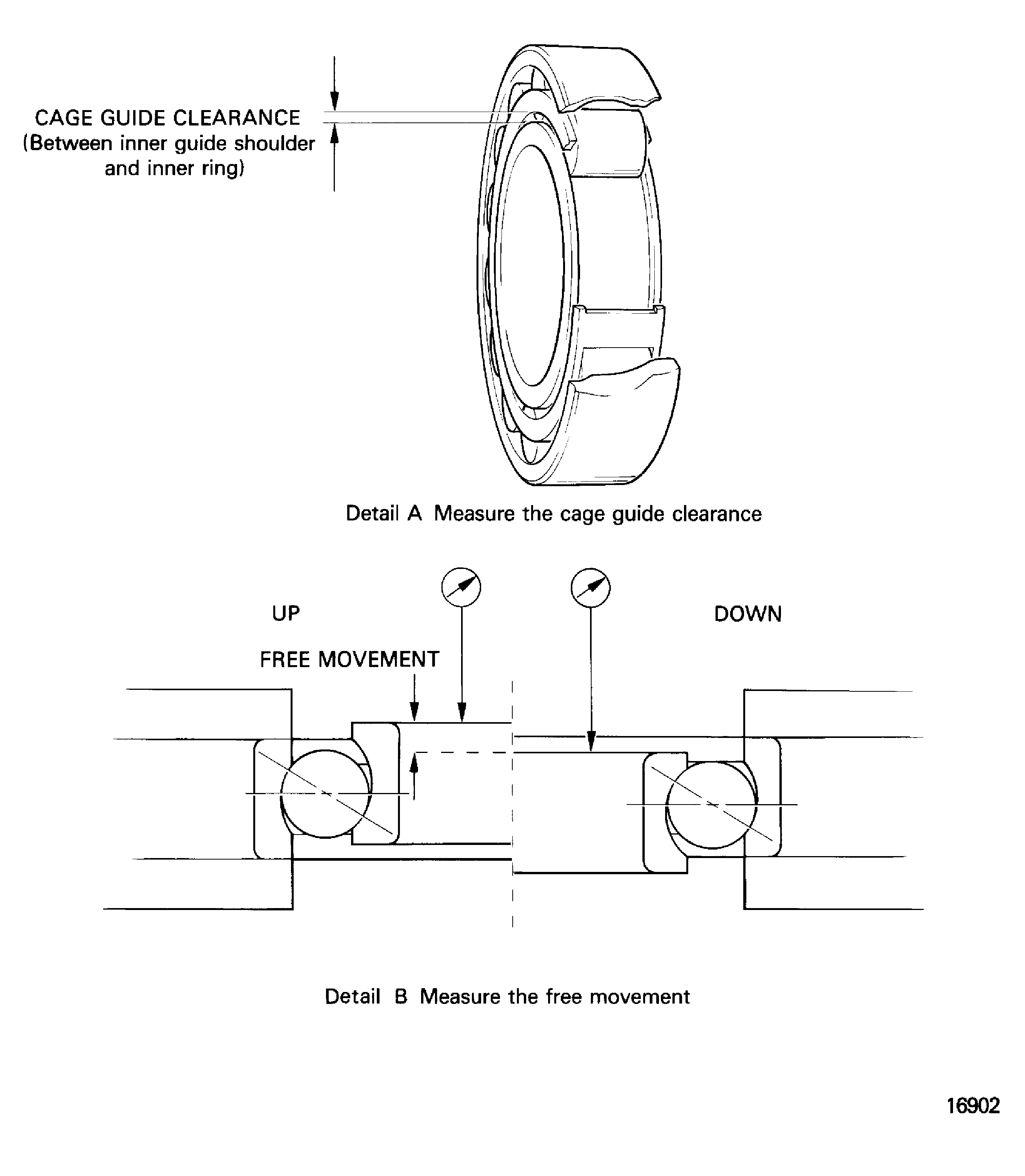 Measure the cage guide clearance, refer to Figure, Detail A.