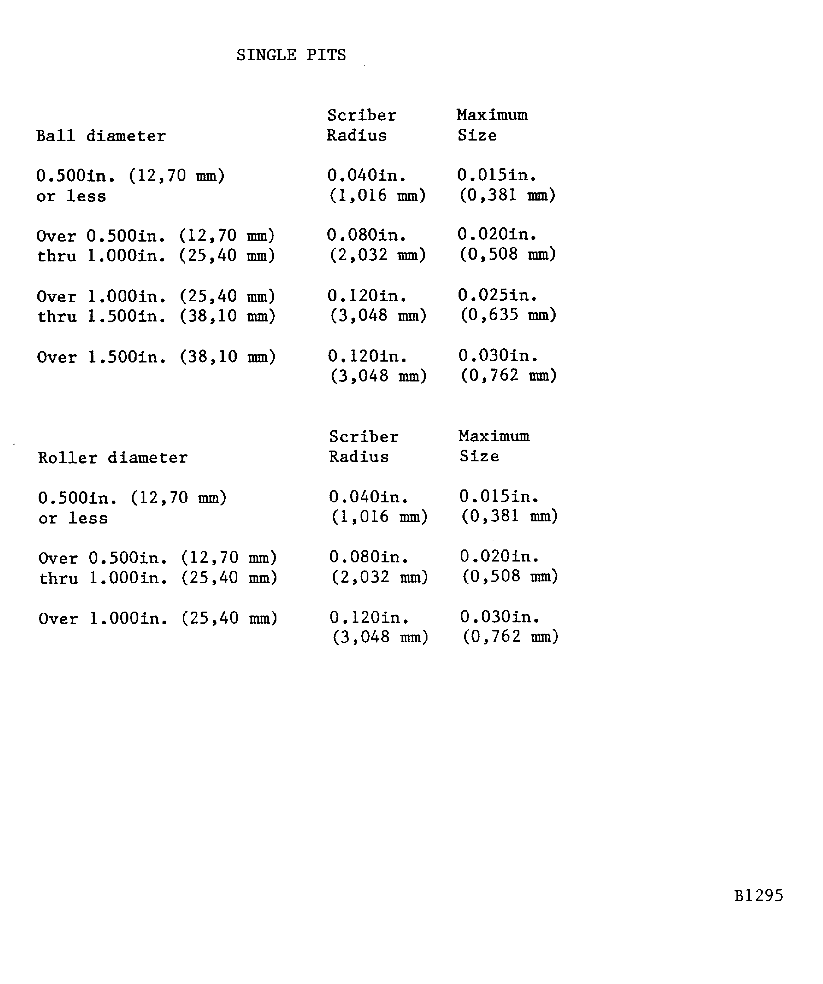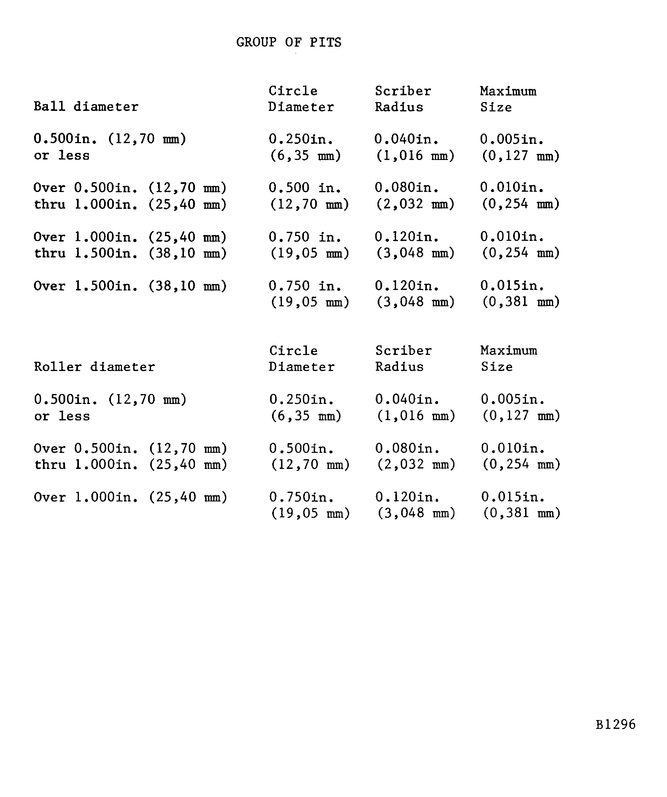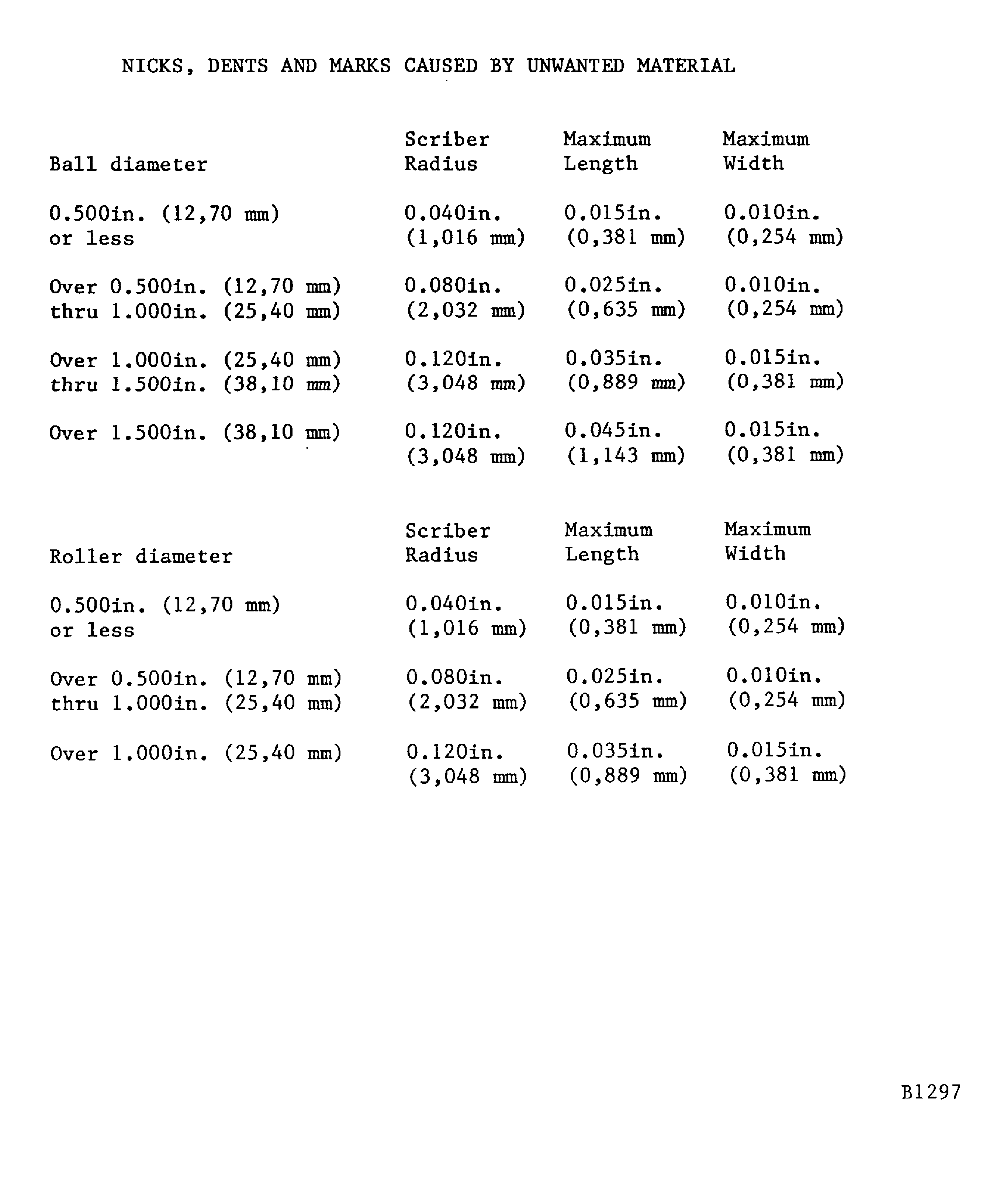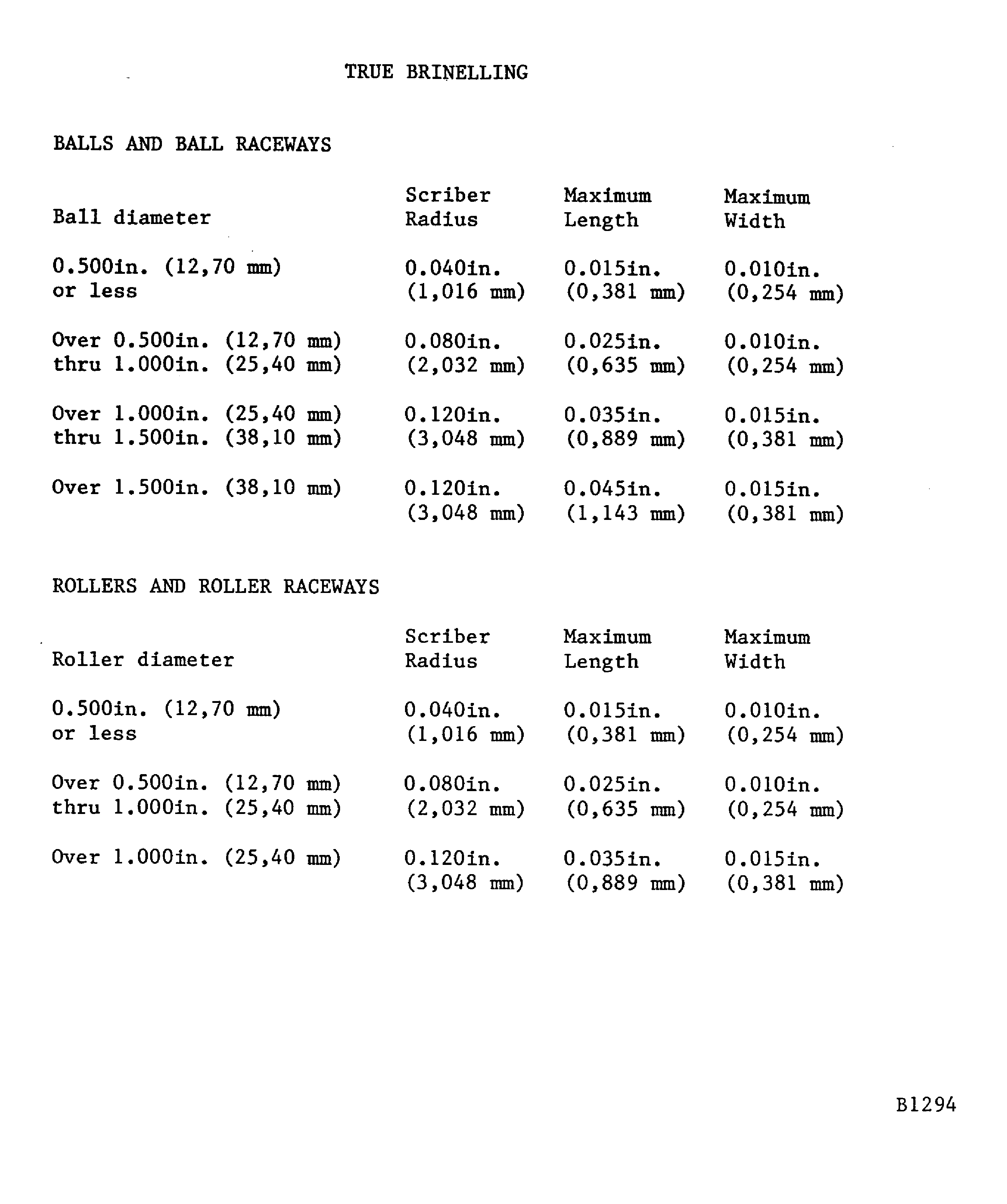 Overhaul limits - True brinelling is acceptable if it can not be felt with the specified scriber for the applicable diameter bearing. If it can be felt it must not be more than the limits given in Figure.