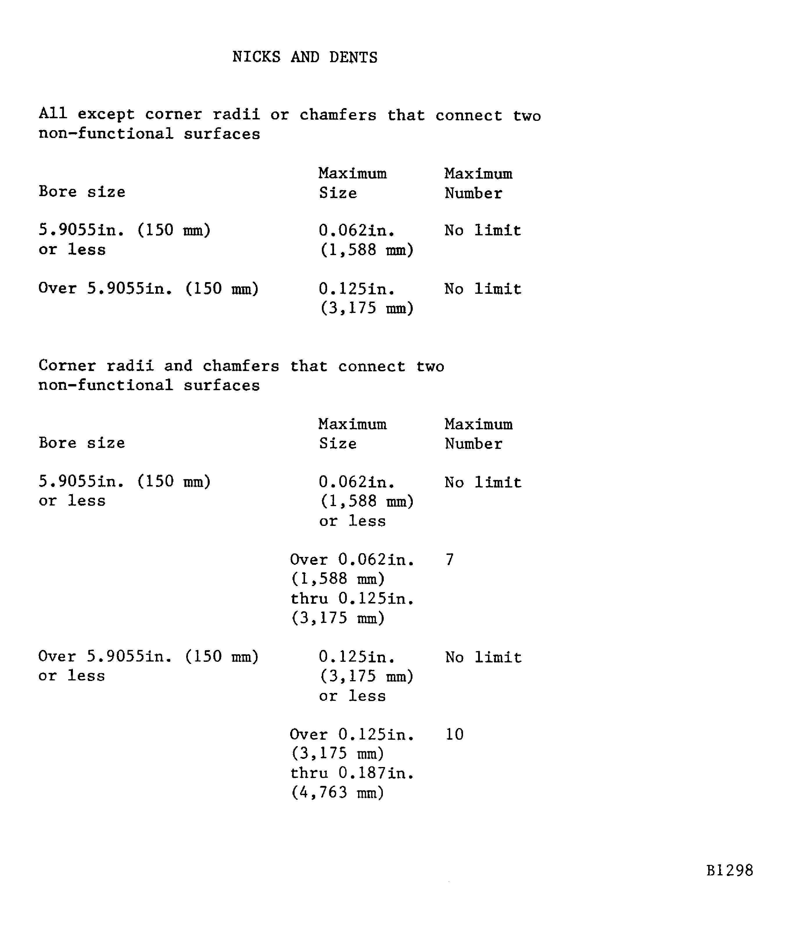 Overhaul limits - Damage or wear as given is cause for rejection.