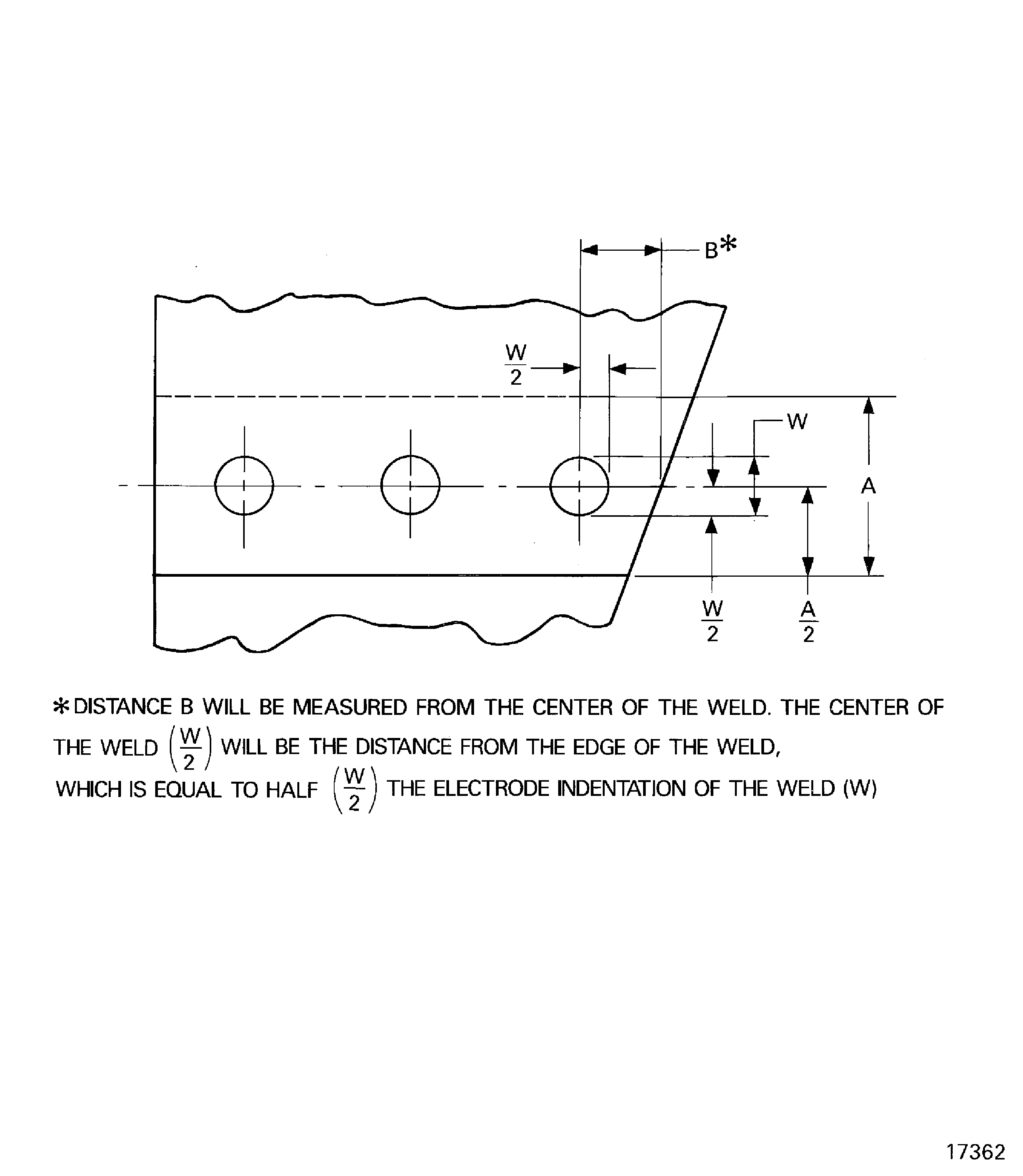 Distance A/2 - (Refer to Figure), from the center of the weld to the edges of the piece, must be less than plus or minus 0.060 in. (1.52 mm) of the distance necessary - (Refer to step 5.B. and the repair illustration).