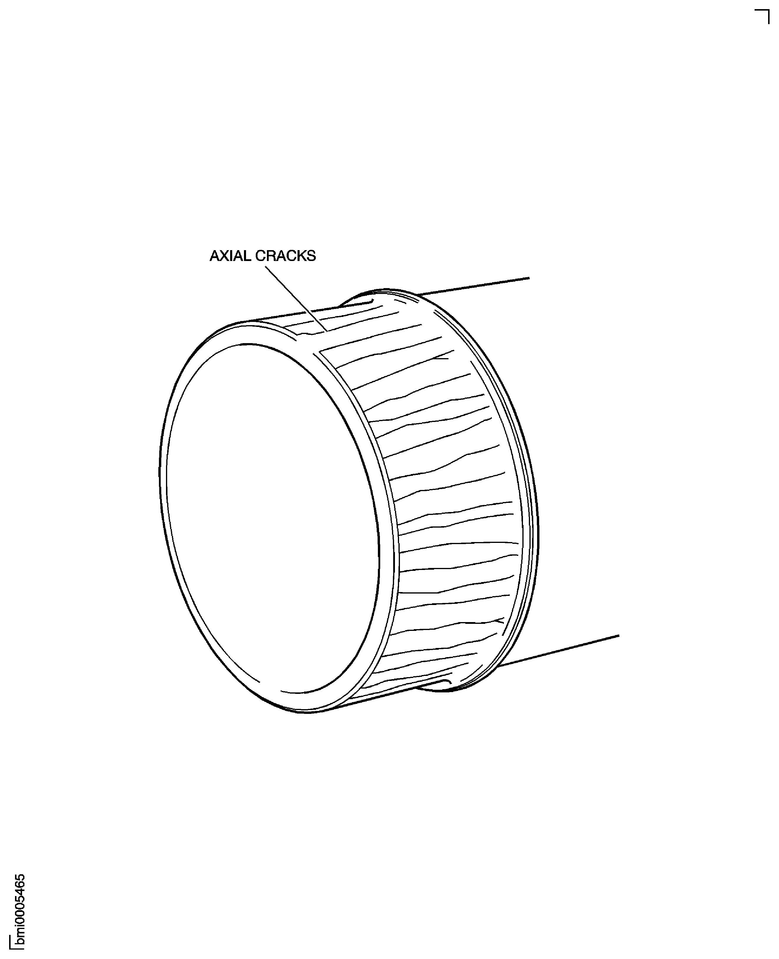 On curved surfaces, straight line circumferential cracks of any size are not permitted. Minute straight line axial cracks similar to those illustrated in Figure are typical of chromium plate on Inner Diameter or Outer Diameter curved surfaces and are permitted. Straight line cracks occurring elsewhere are not permitted.