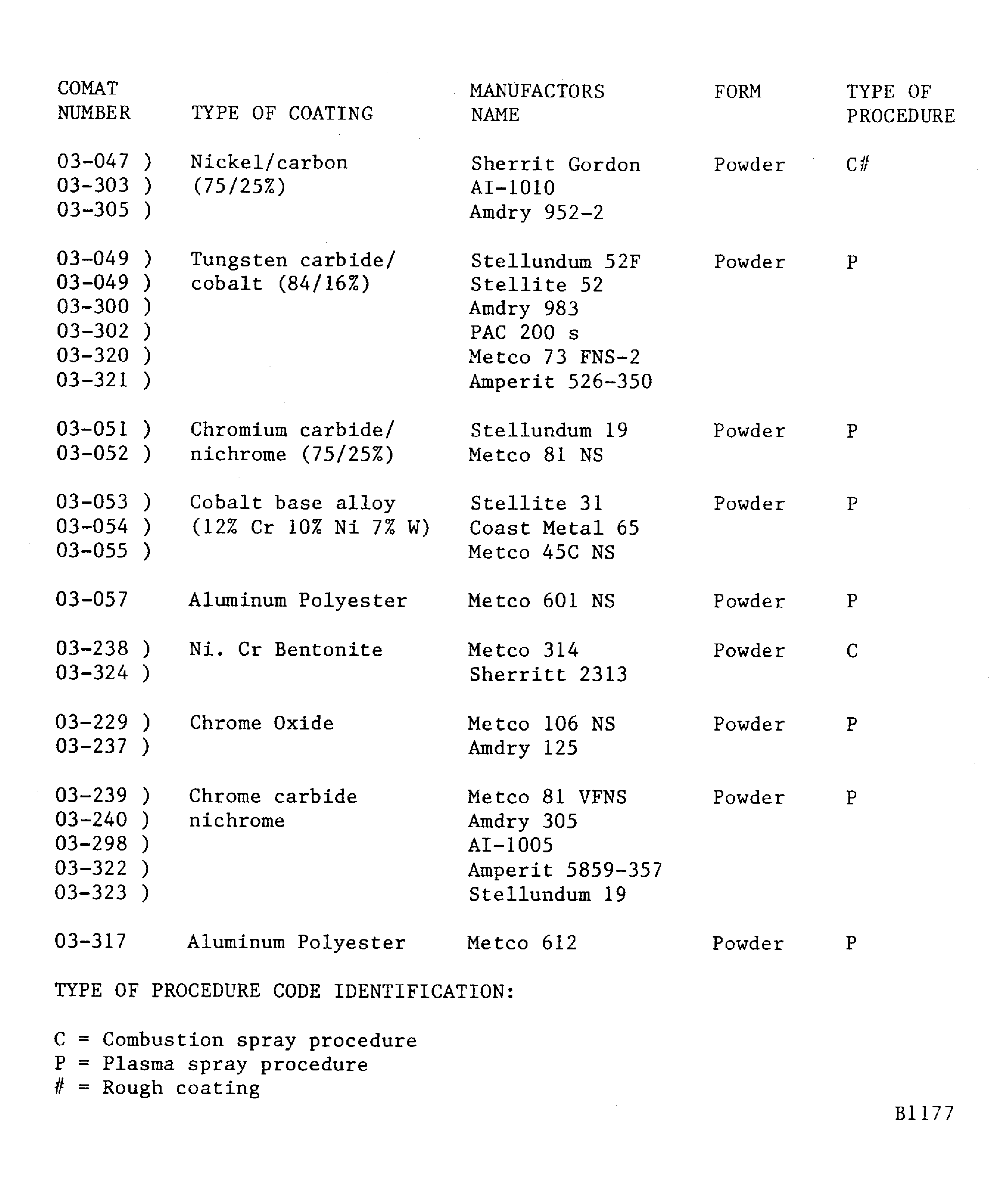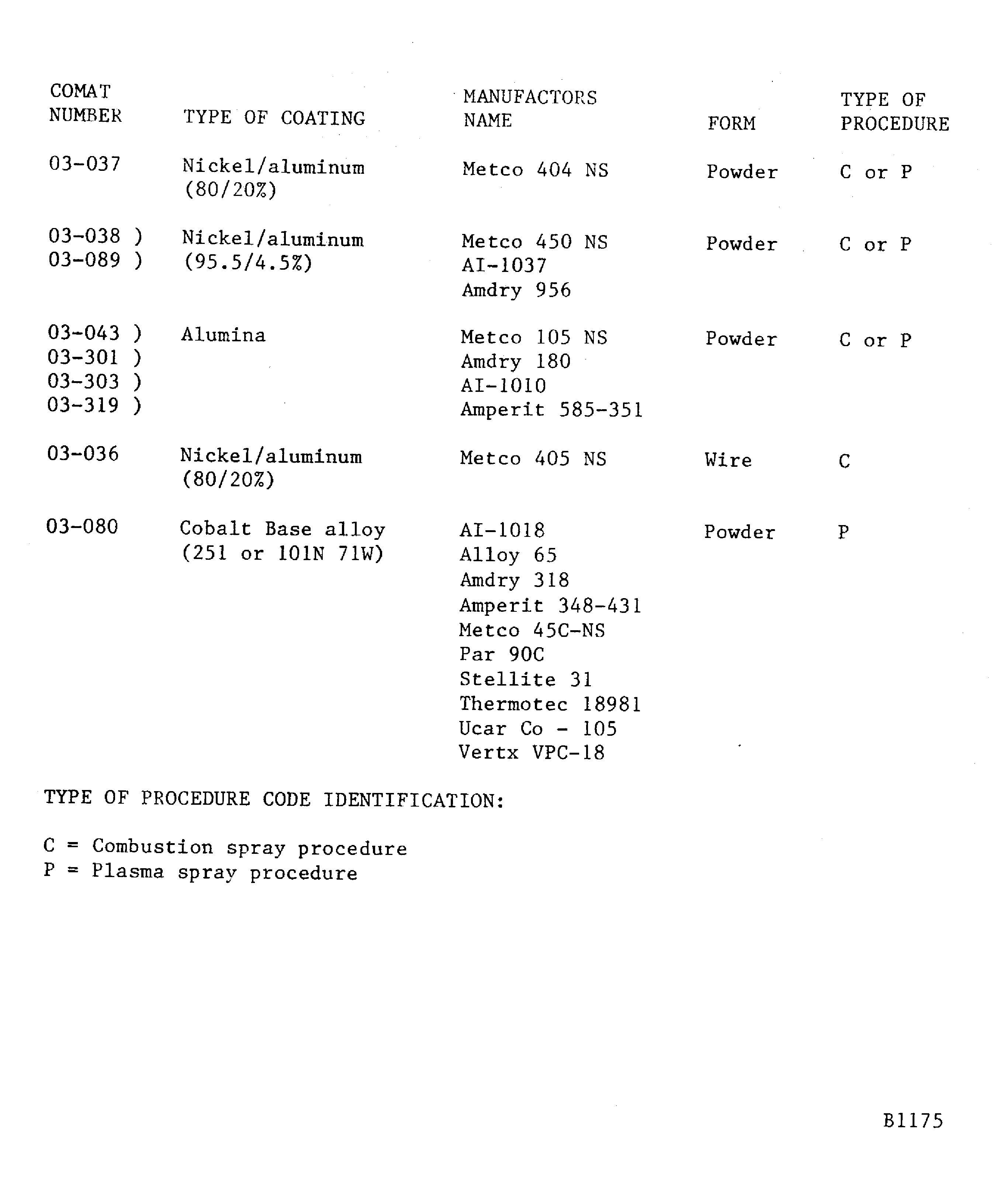 To apply CoMat 03-053 METAL SPRAYING POWDER,25% Cr, 7% W, CoMat 03-055 METAL SPRAYING POWDER,COBALTALLOY 25% CHROMIUM, 7% TUNGSTEN, CoMat 03-307 METAL SPRAYING POWDER,Co-BASE ALLOY, CoMat 03-308 METAL SPRAYING POWDER,Co BASE ALLOY or CoMat 03-309 METAL SPRAYING POWDER,Co-BASE ALLOY, refer to Figure or Figure.