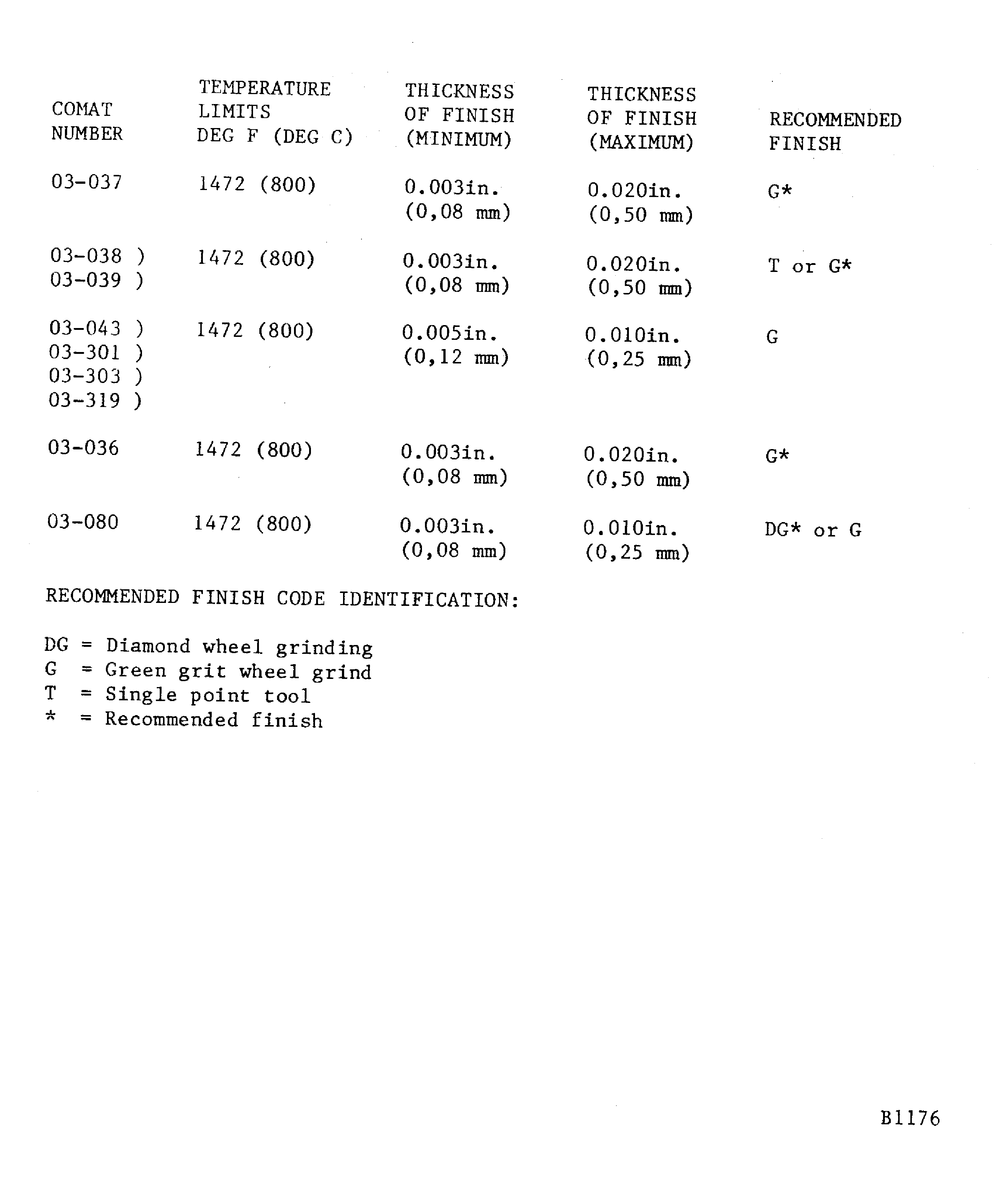 After finishing, visually examine the coating by the use of a magnification of up to x7 where necessary. A satisfactory coating has a matt finish, in which the machining marks can easily be seen. There must be no color change, and the coating must not be cracked, spalled or polished. Less important chips, at the edge of the coating and not related to the condition of the bond, can be accepted for some uses. When necessary, the standard that can be accepted are given in the Engine Manual.