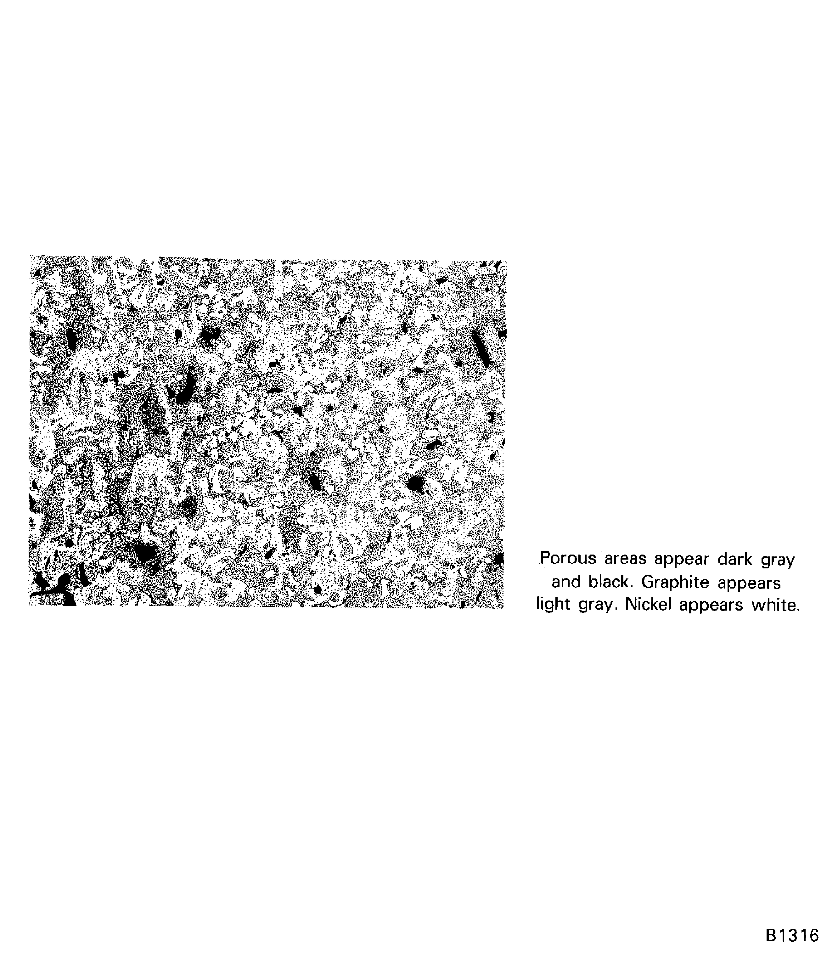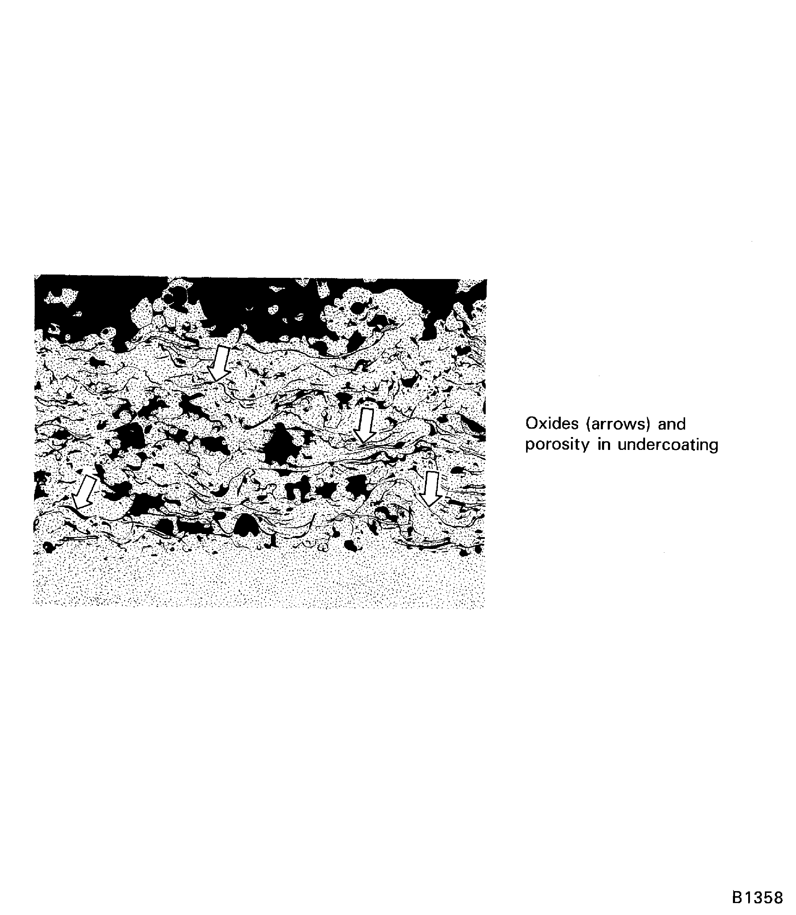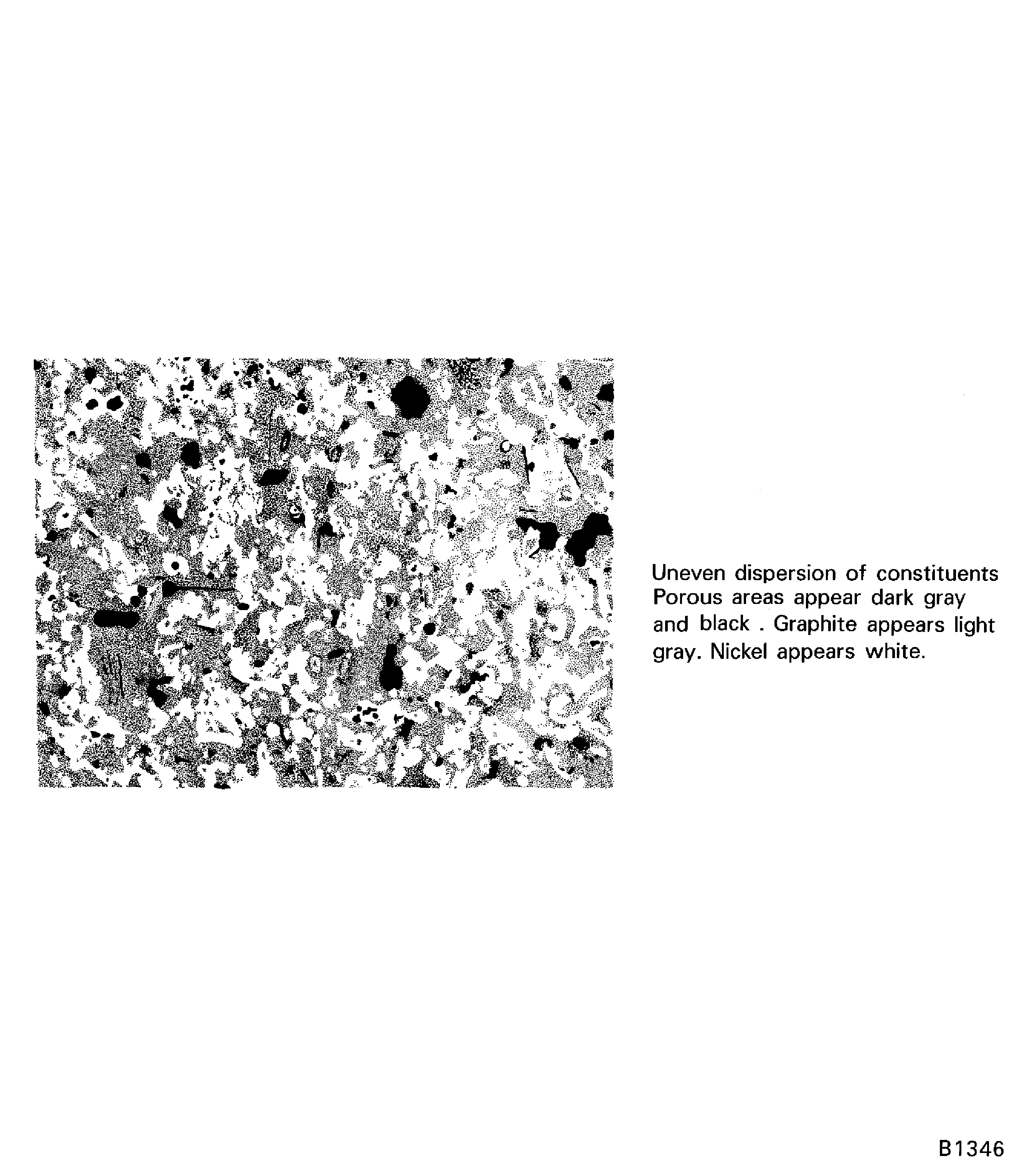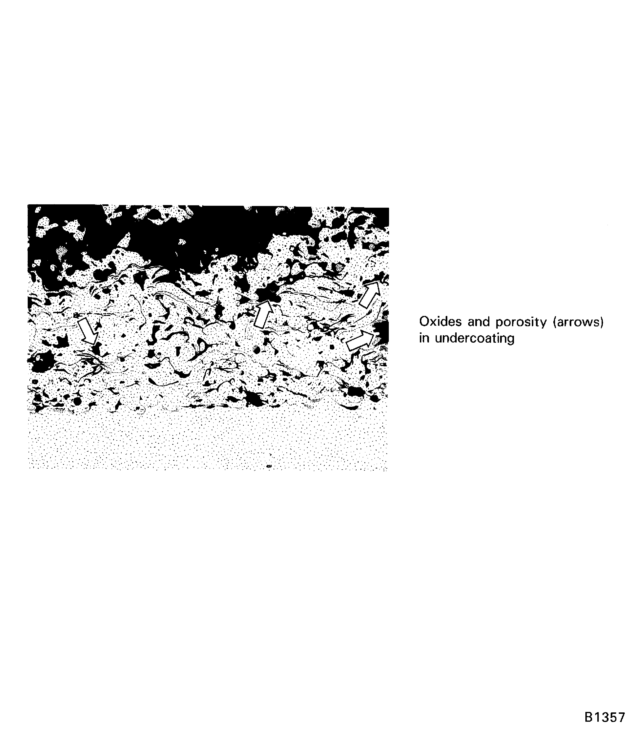 Figure: Unsatisfactory dispersal of nickel/graphite constituents in PWA 74-2 coating (graphite not sufficient) (100x)