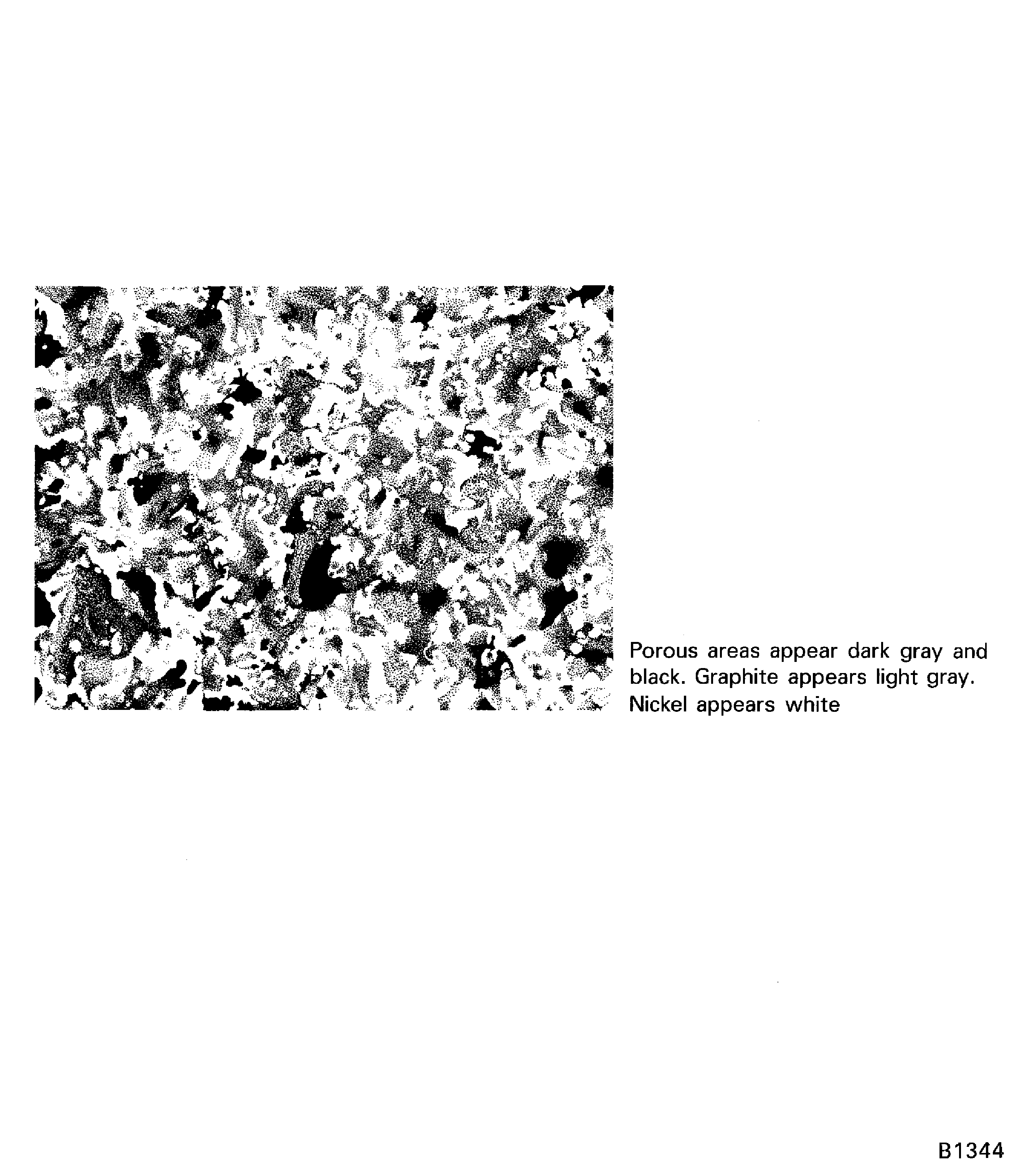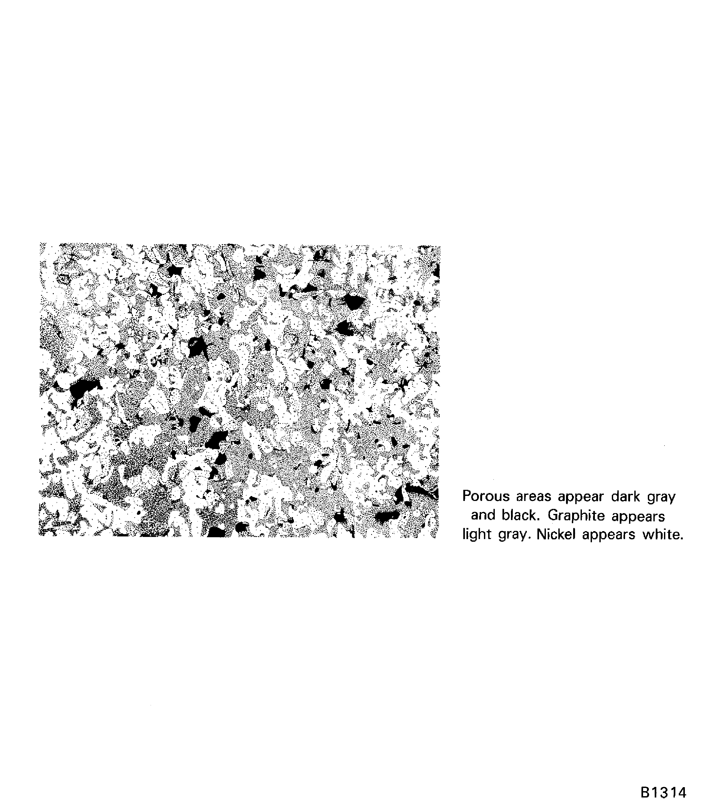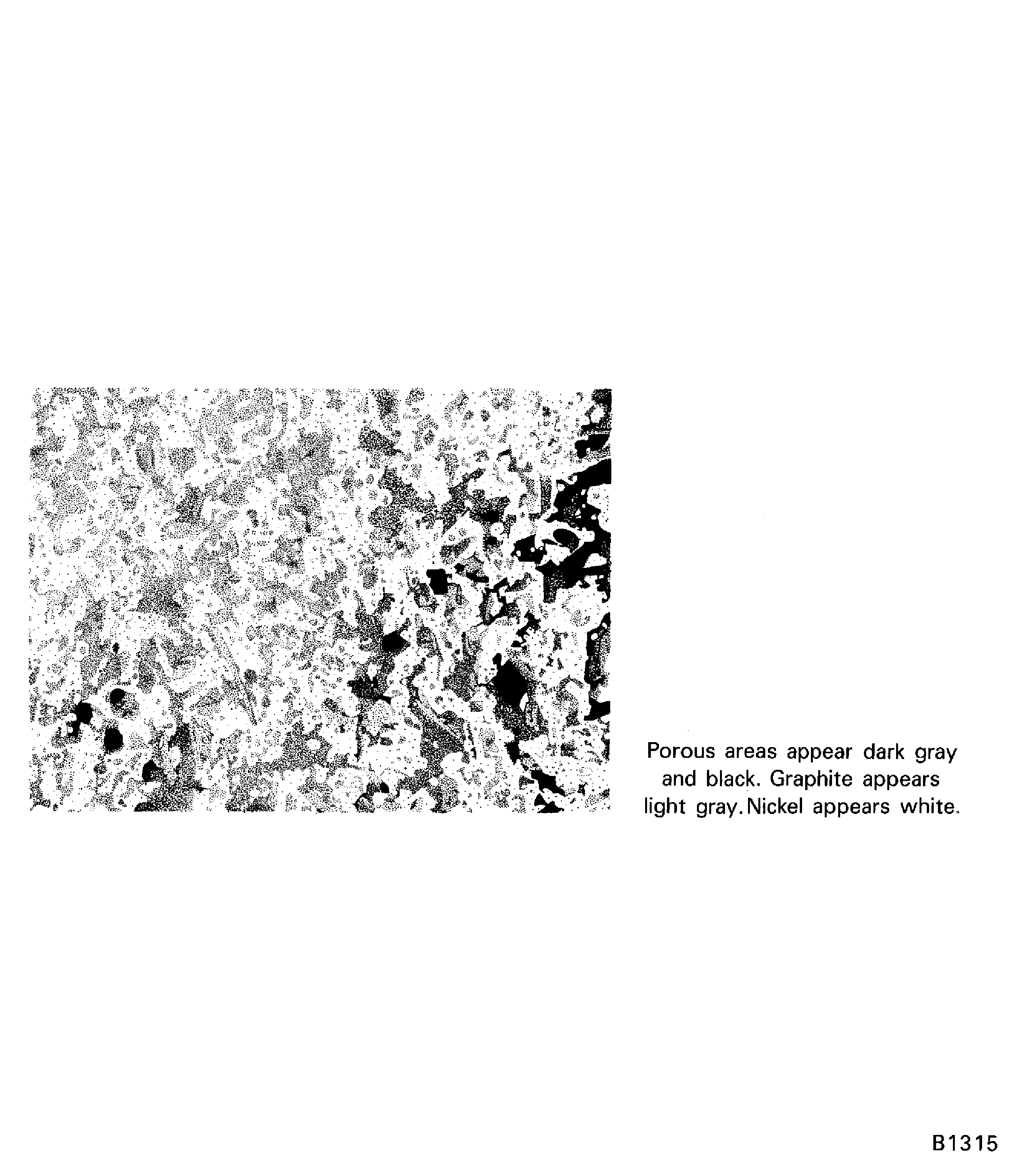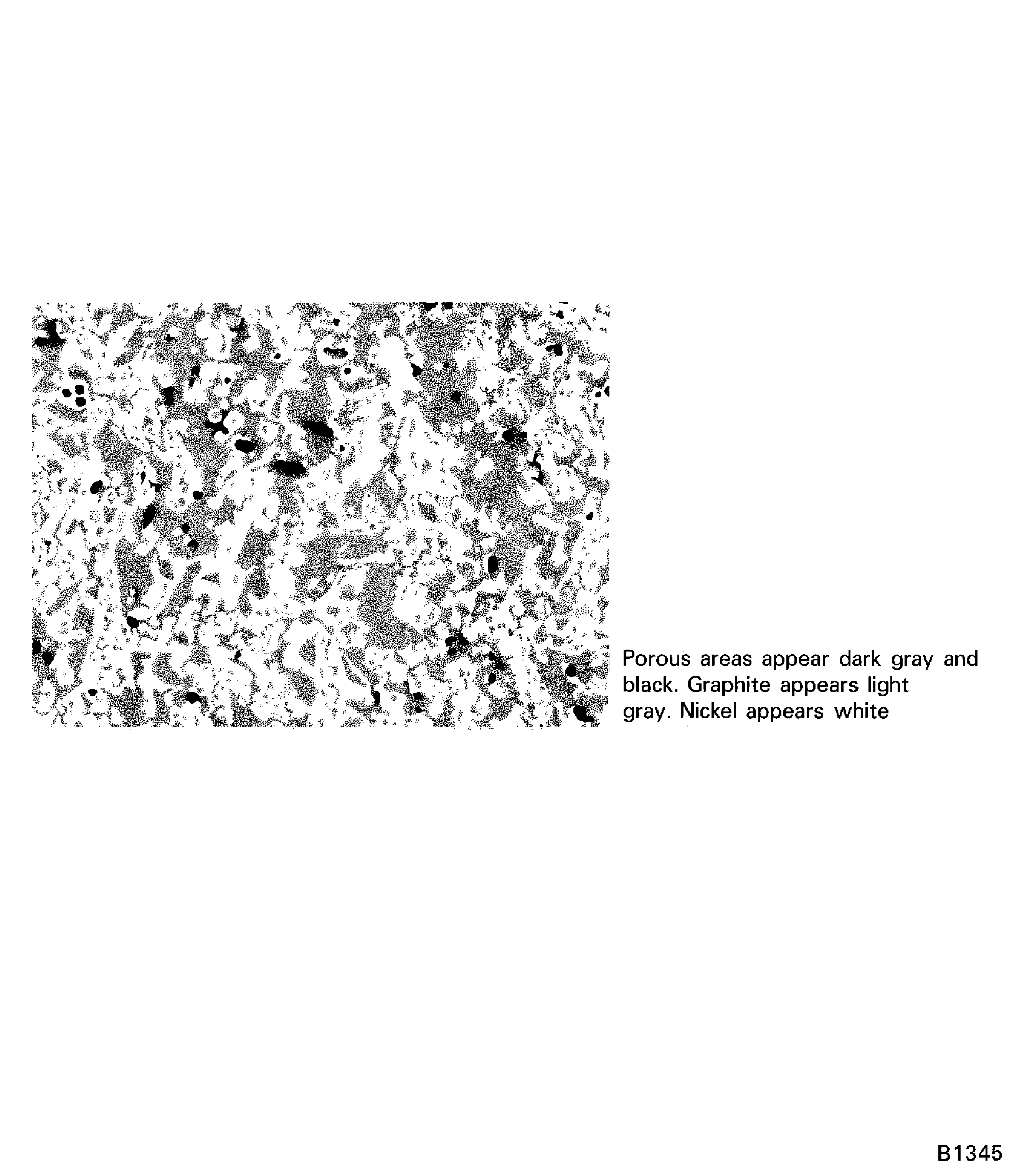 Figure: Unsatisfactory dispersal of nickel/graphite constituents in PWA 74-2 coating (graphite not sufficient) (100x)
