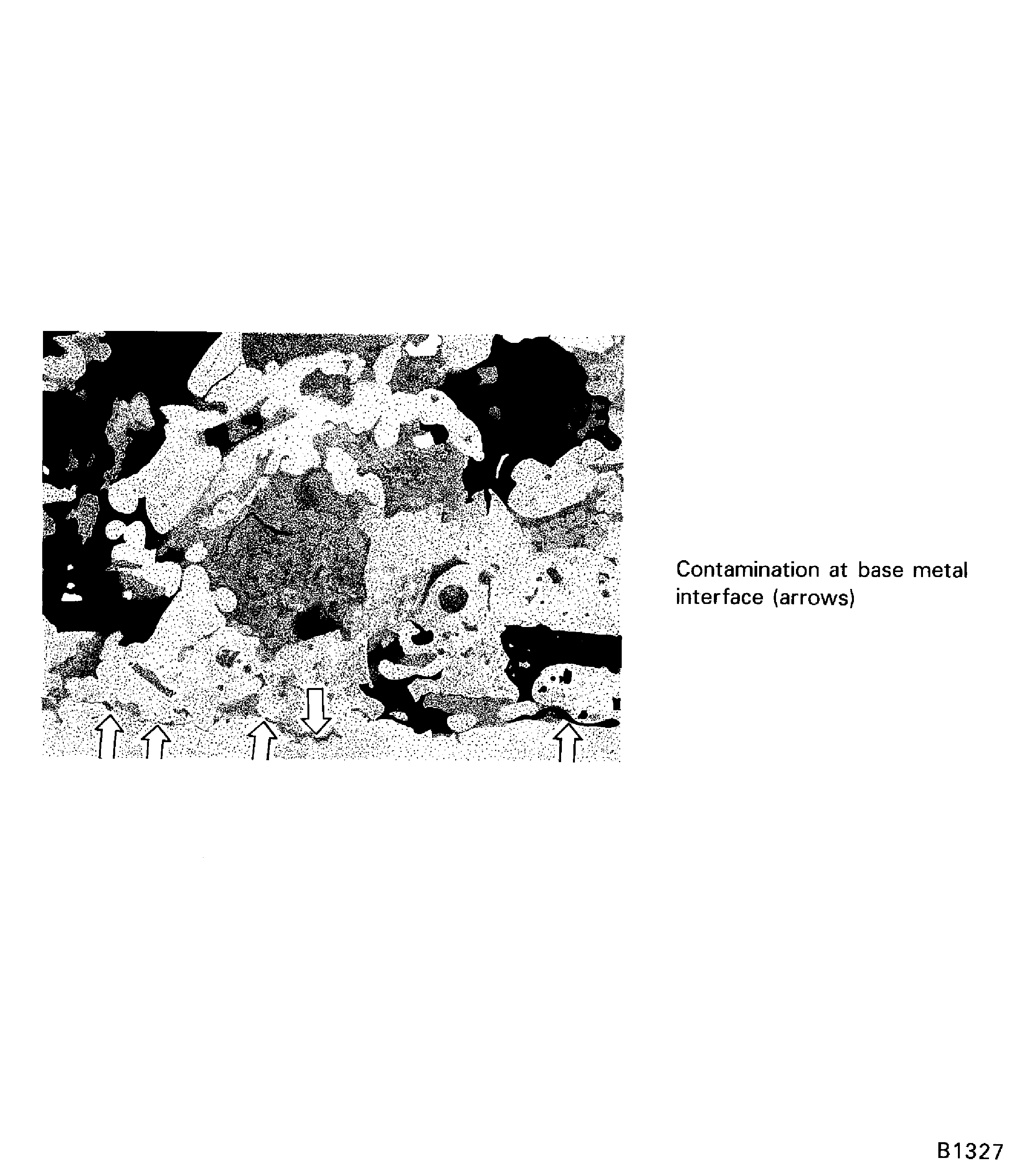 Figure: Unsatisfactory oxides in PWA 74-1 and PWA 74-2 coating (500x)