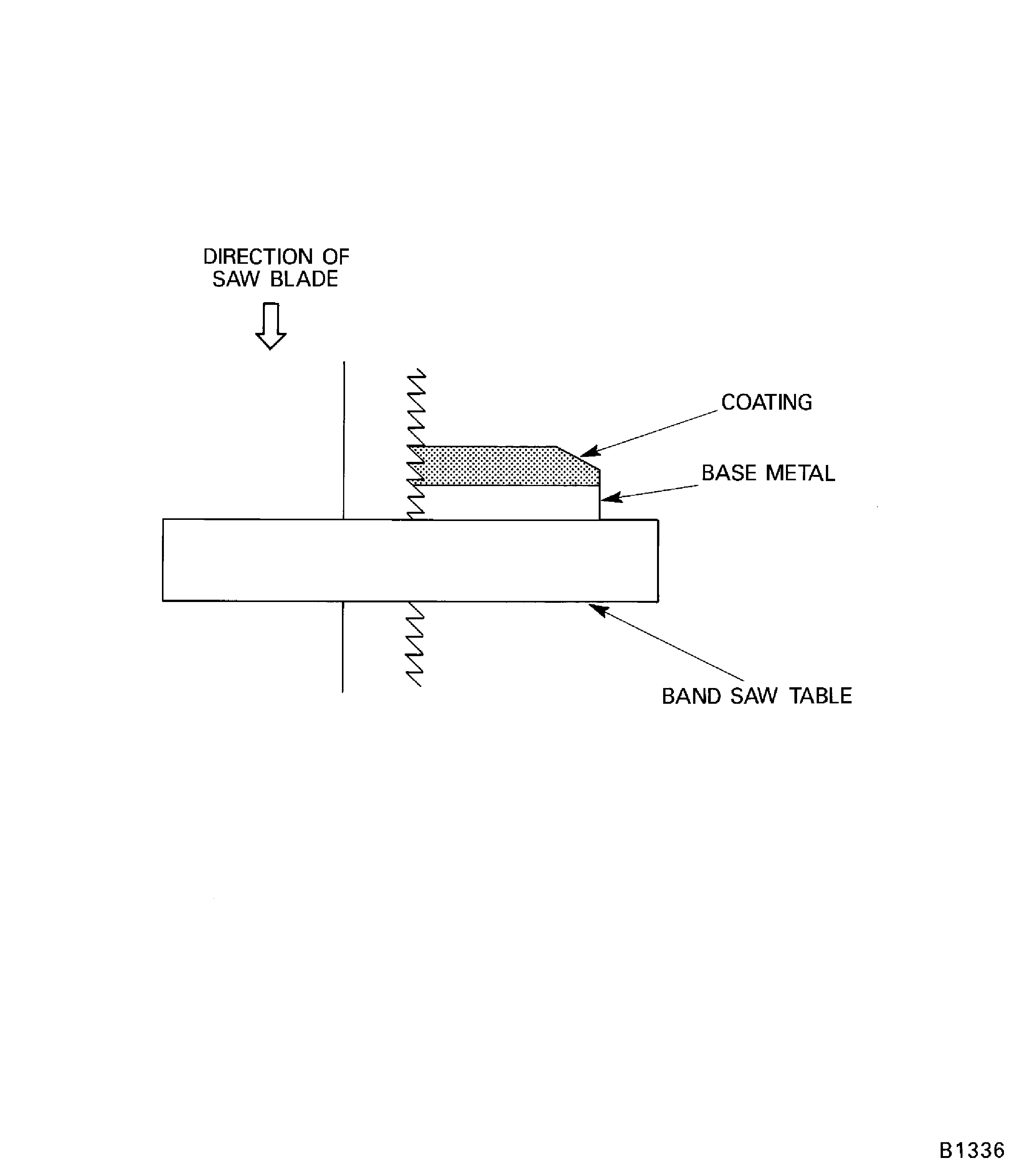 Cut specimen approximately 0.75 to 1.00 in. (19.050 to 25.40 mm) long and full width using a band saw with HSS 10-14 teeth/inch blade at approximately 30 SFPM, feeding by hand, refer to Figure.