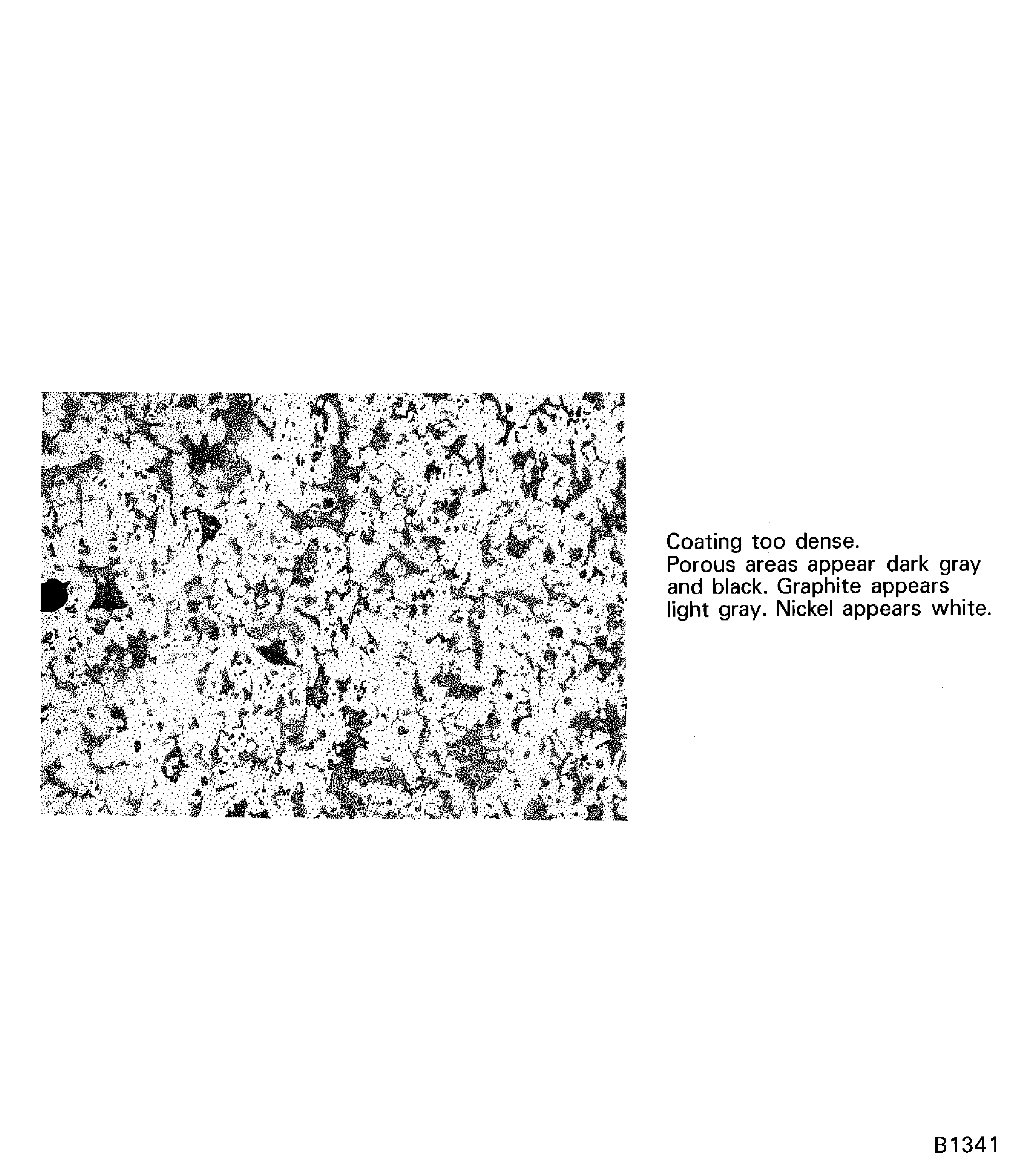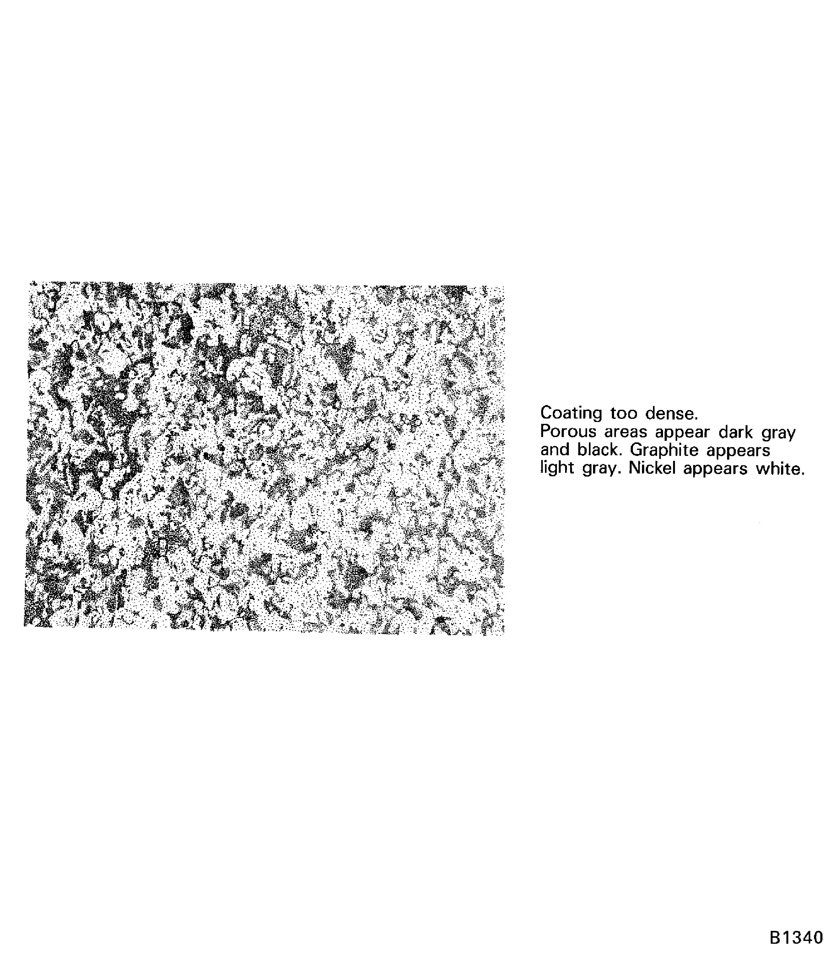 Unsatisfactory dispersal of nickel/graphite constituents in PWA 74-1 coating (100x) (Graphite not sufficient)