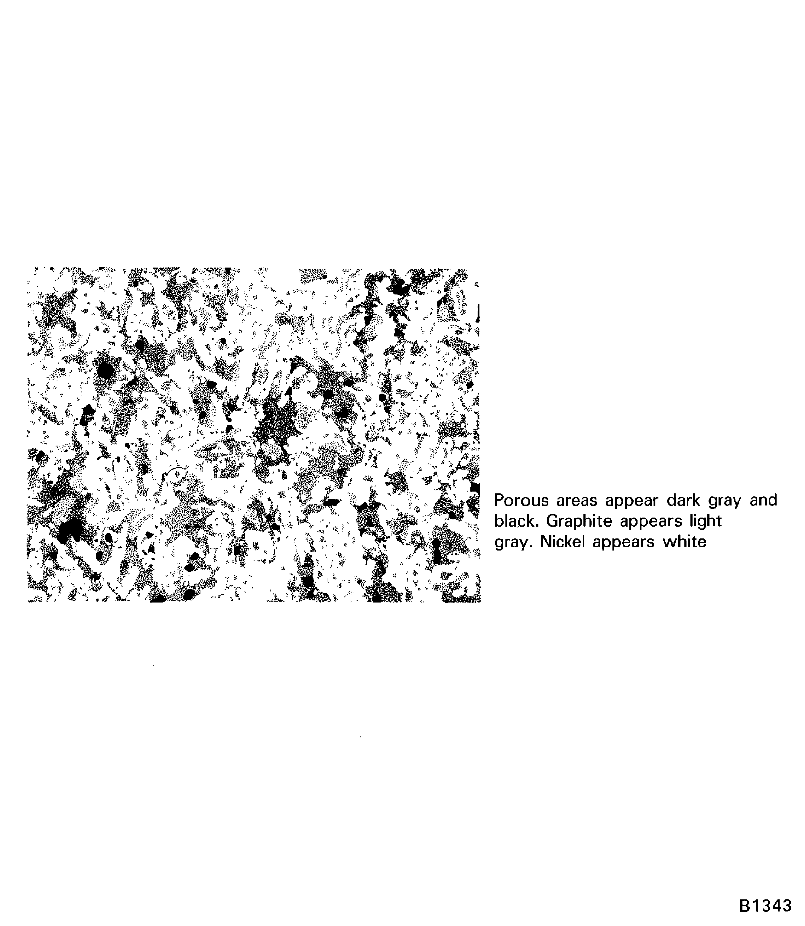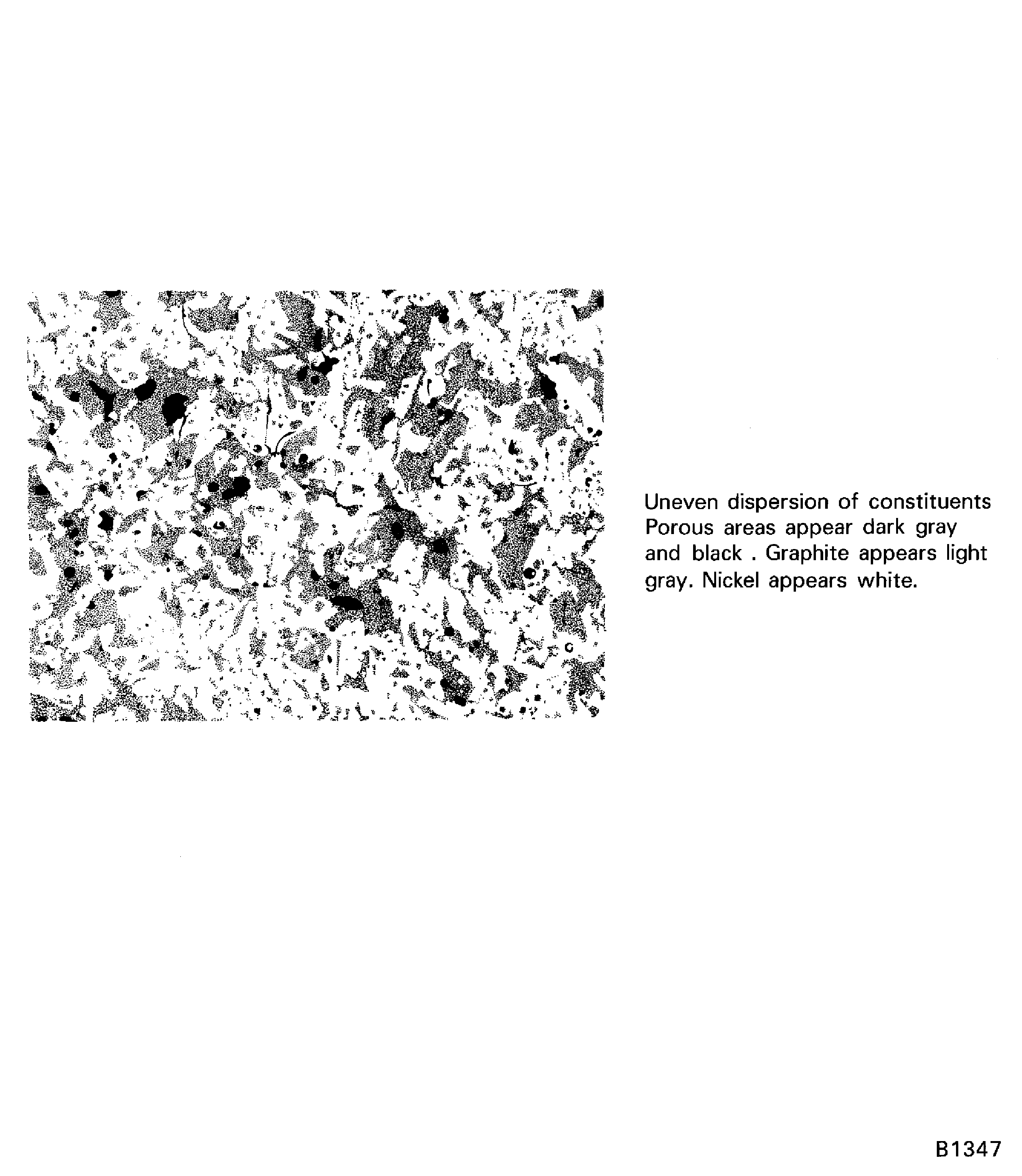 Figure: Unsatisfactory dispersal of nickel/graphite constituents in PWA 74-1 coating (100x) (Graphite not sufficient)