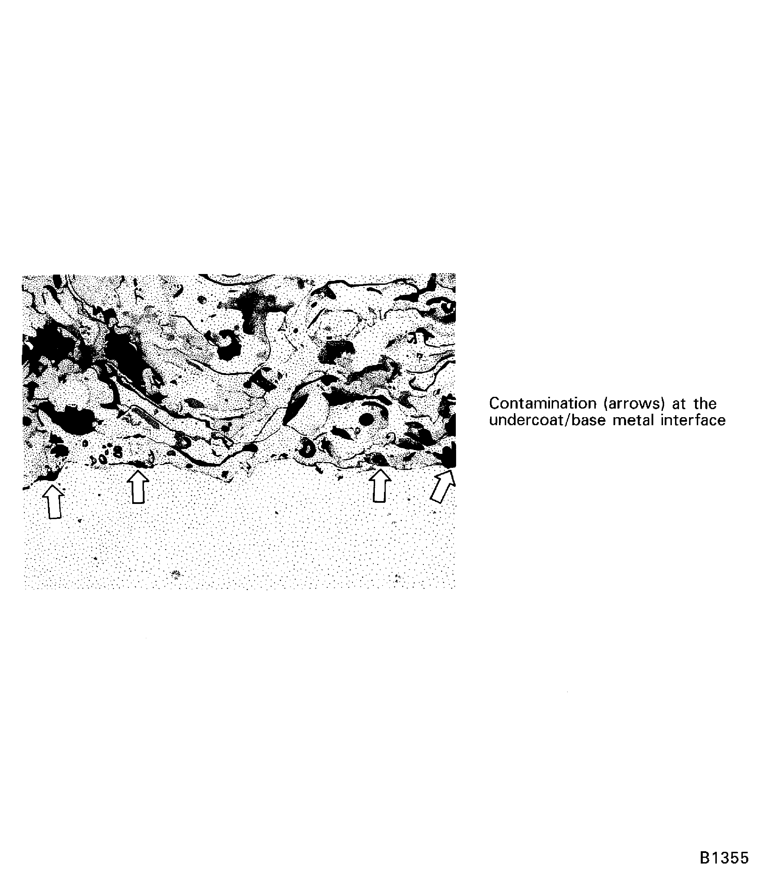 Figure: Unsatisfactory bond at coating interface in PWA 74-1 coatings (500x)