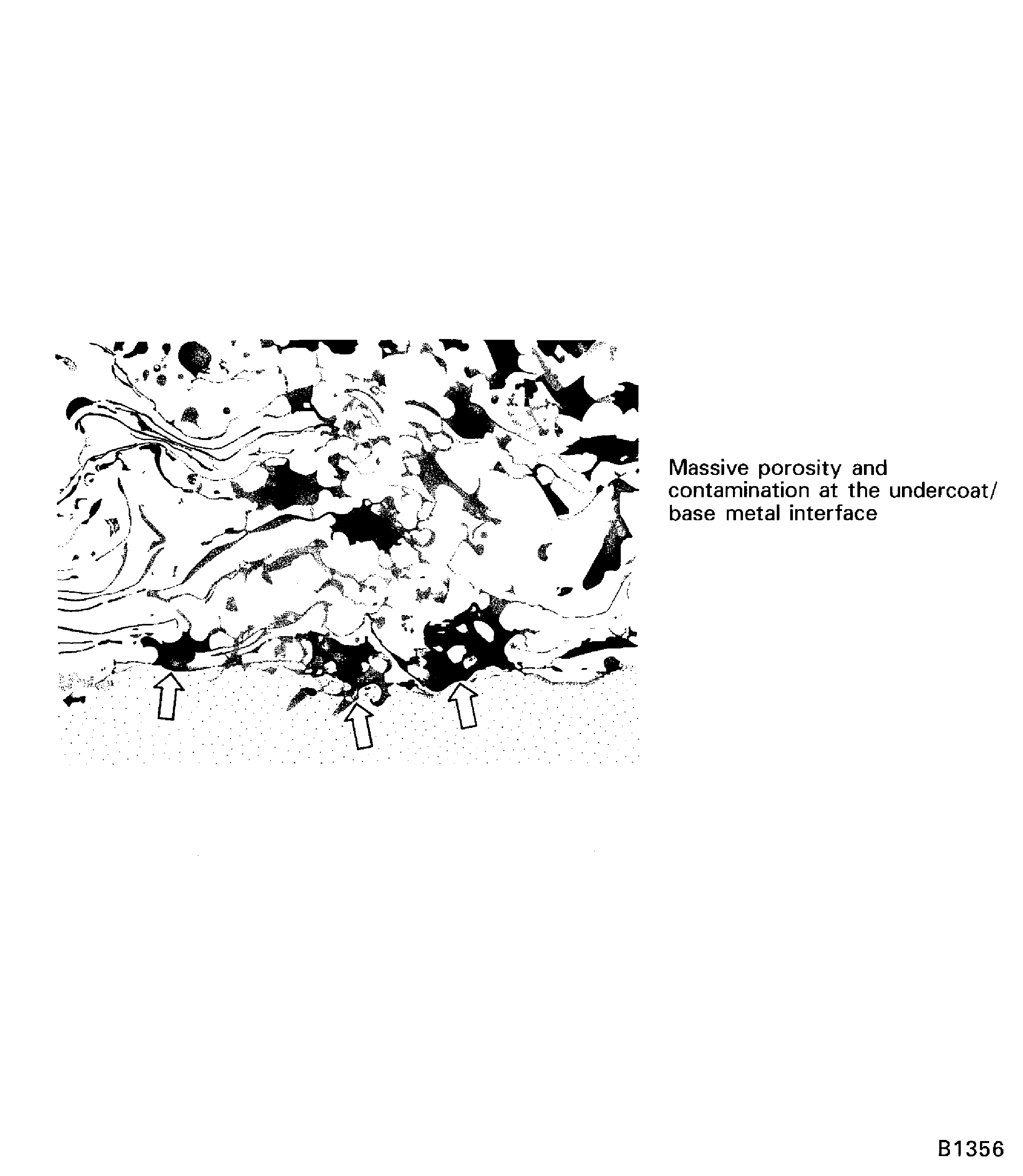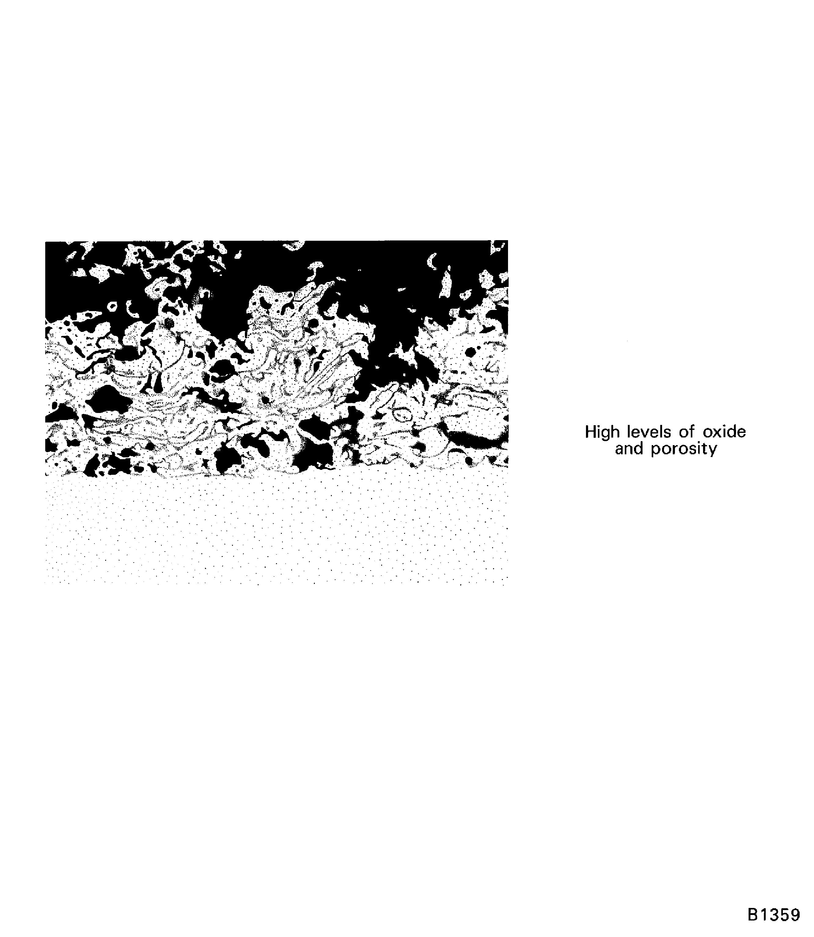 Figure: Unsatisfactory porosity in PWA 74-2 coating (100x)