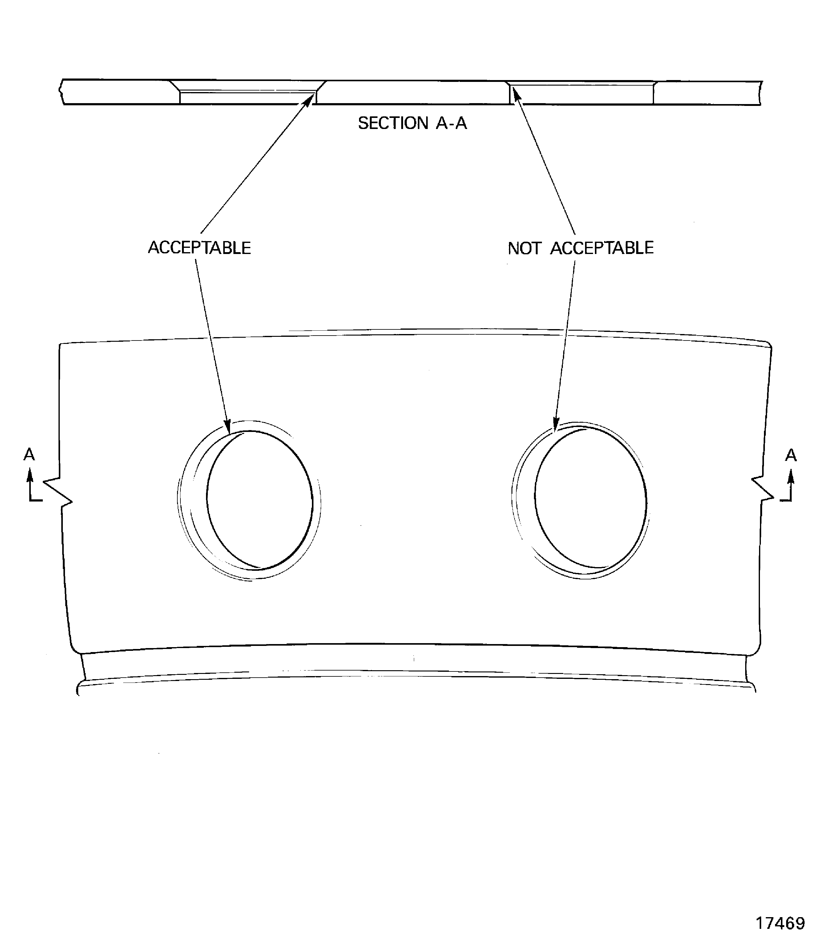 Figure shows permitted and reject conditions of butterfly finished holes.