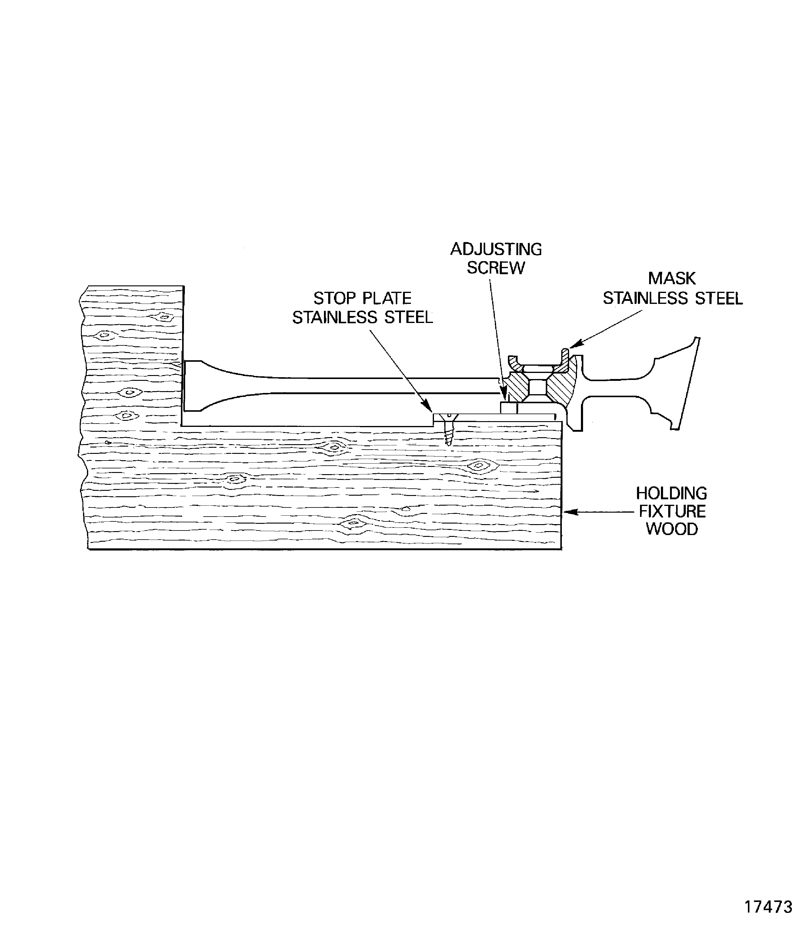 Steel masks to protect face and snap diameter of parts as shown in Figure. Make mask of stainless steel 0.015 to 0.030 in. (0.381 to 0.762 mm) thick or of mild steel with chromium flash to resist abrasion. Hole size must be approximately 0.250 in. (6.35 mm) (diameter) larger than hole being reworked. Height of lip protecting snap diameter must not interfere with cutting action of abrasive and cause blend to be off center or leave an area at end of hole which is not reworked.