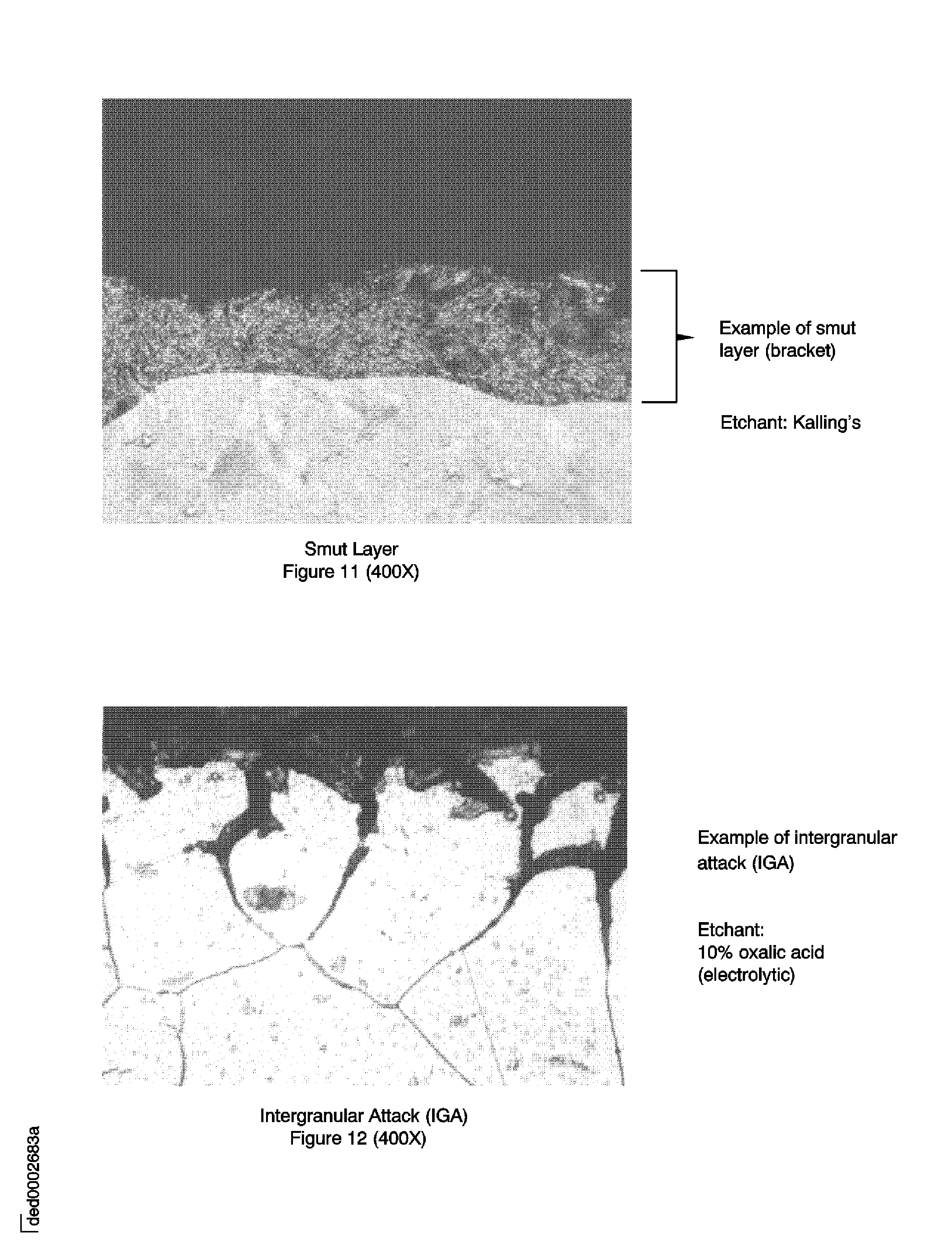 Application time for electrolytic etching must not be more than 10 seconds; too much etching of the specimen could result in the masking of defects.Oxalic acid, 10 percent (electrolytic):