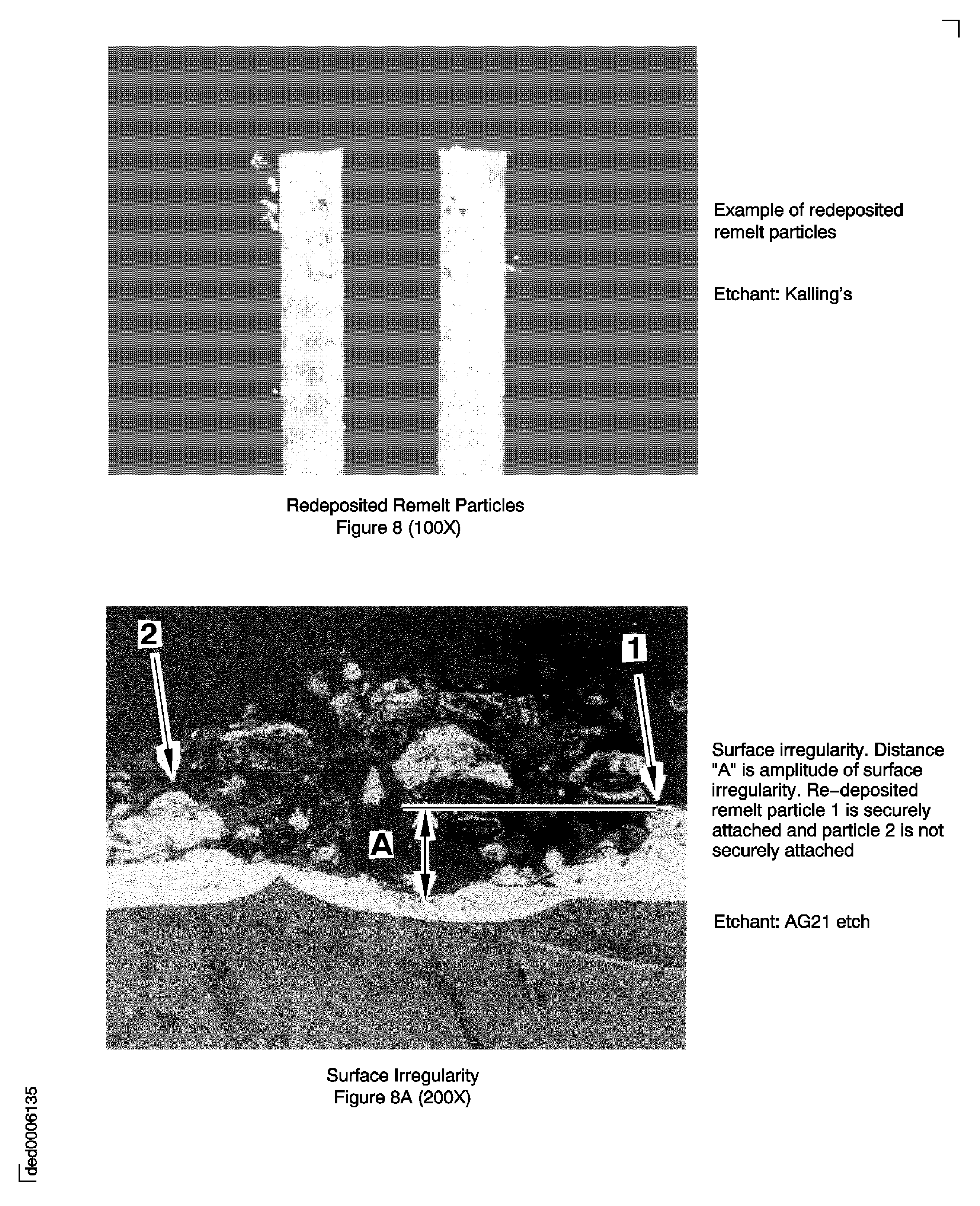 Surface irregularity measurement is applicable only to the attached remelt layer and is to include redeposited remelt particles securely bonded to the attached remelt layer. See Figure Figure 8A. Surface irregularity is not applicable to turbine airfoil and platform cooling holes.For Nickel Base Vanes (Other than IAE 655).