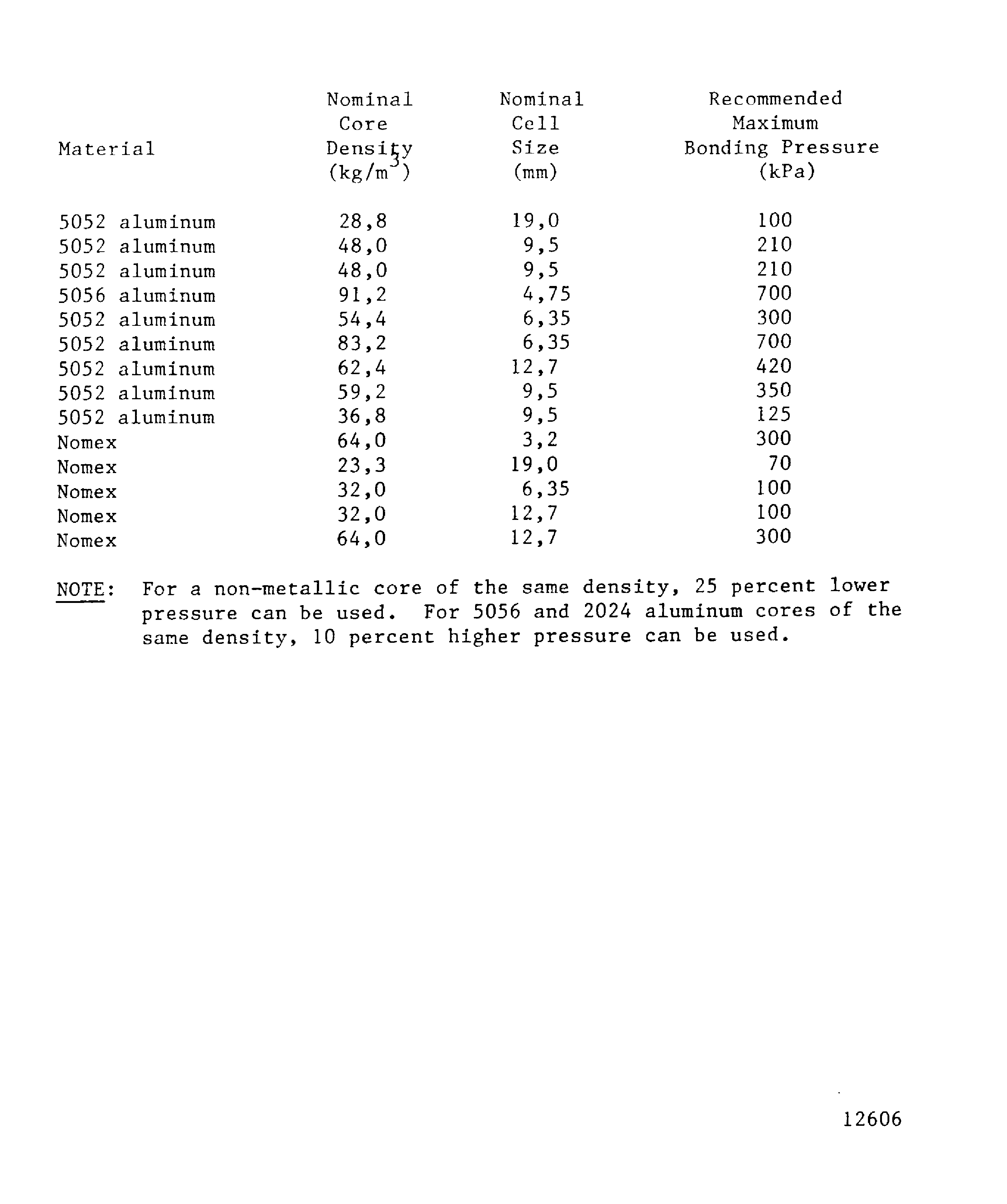 Heat the components to 347 to 386 deg F (170 to 180 deg C) with the pressure shown in Figure. Keep at this temperature and pressure for one hour. Do not remove the bonding pressure until the glue-line temperature has reduced to less than 302 deg F (150 deg C).