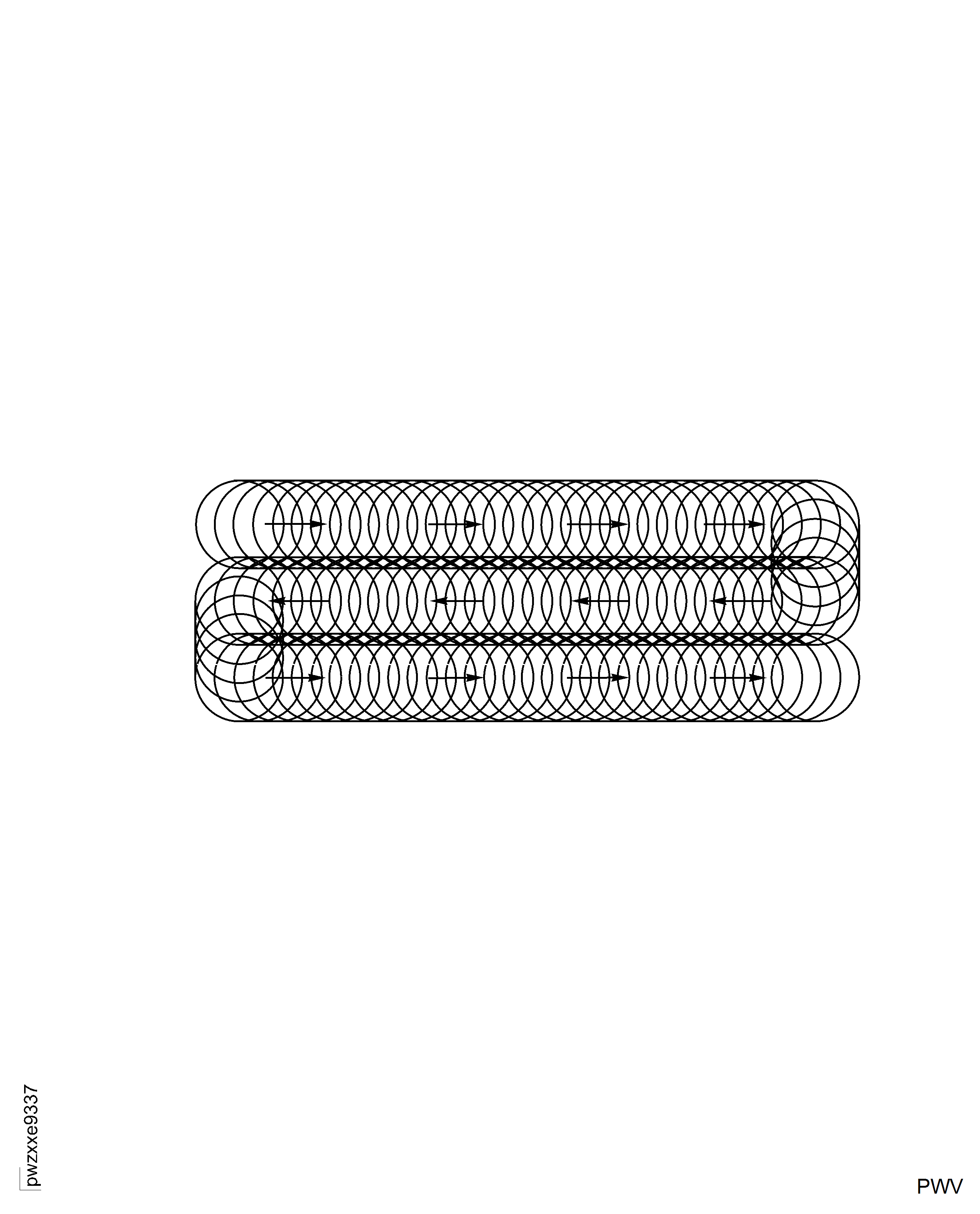 To make sure that peening coverage is the same on all sides, use a circular or oscillating motion over the full area. Use continuous motion while you move the mandrel in rows across the full length of the test strip. Make an overlap of each row. See Figure.
