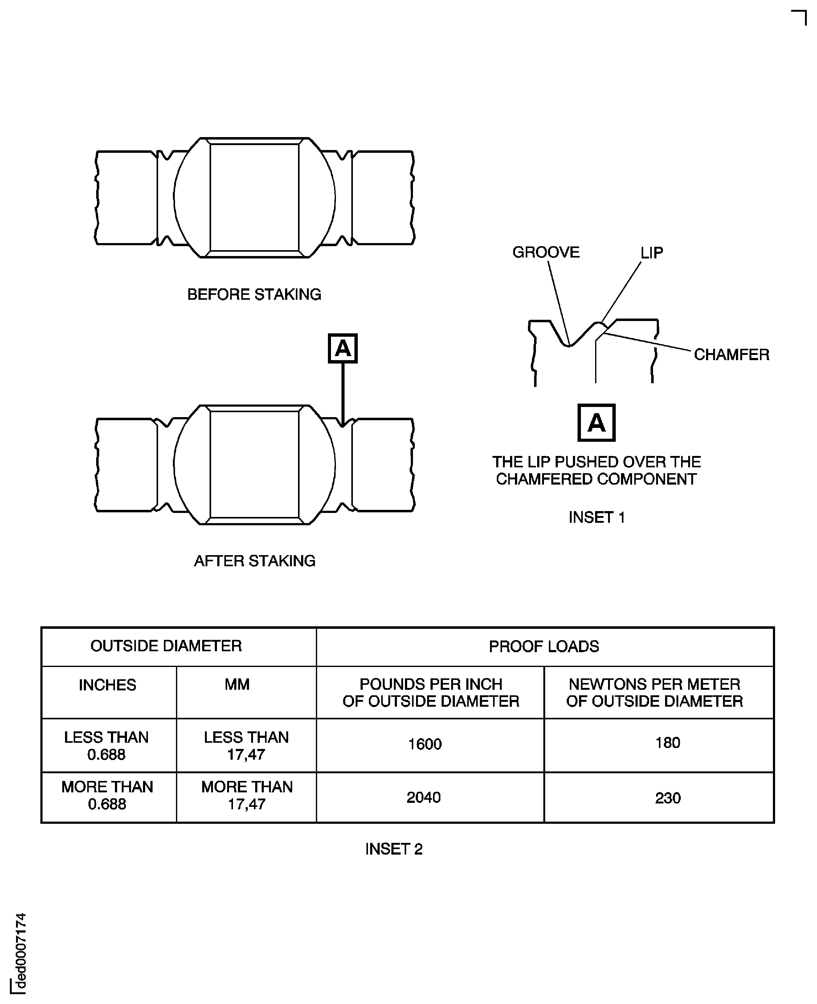 Proof loads when used are the value given in Figure INSET 1, multiplied by the outside diameter of the component that is held.