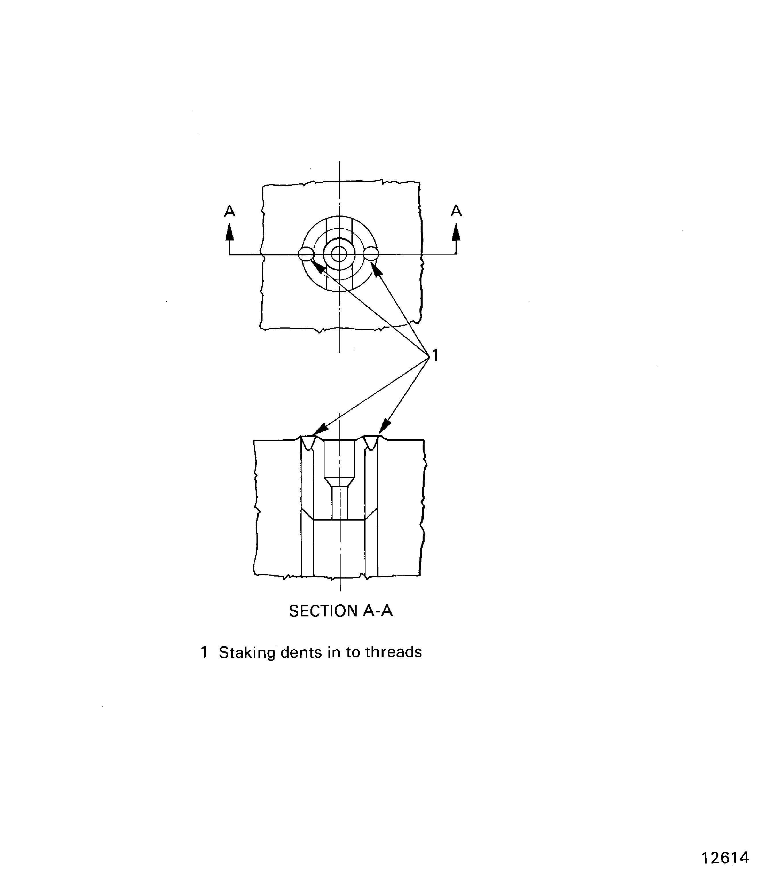 Staking dents must be in to the threads and be equally divided to the nearest 15 degrees.