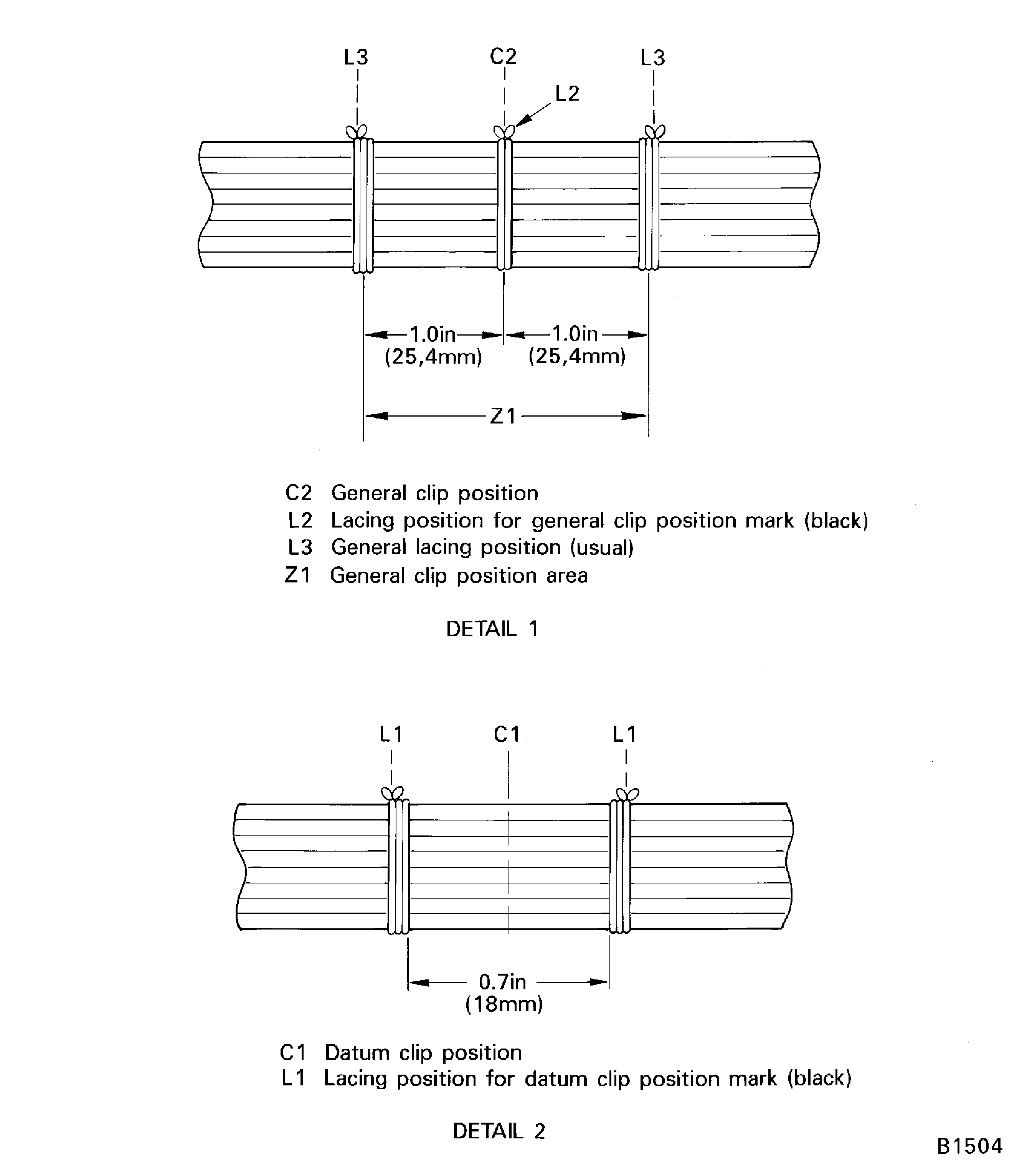 General clip position mark lacing ties, refer to Figure, Detail-1.