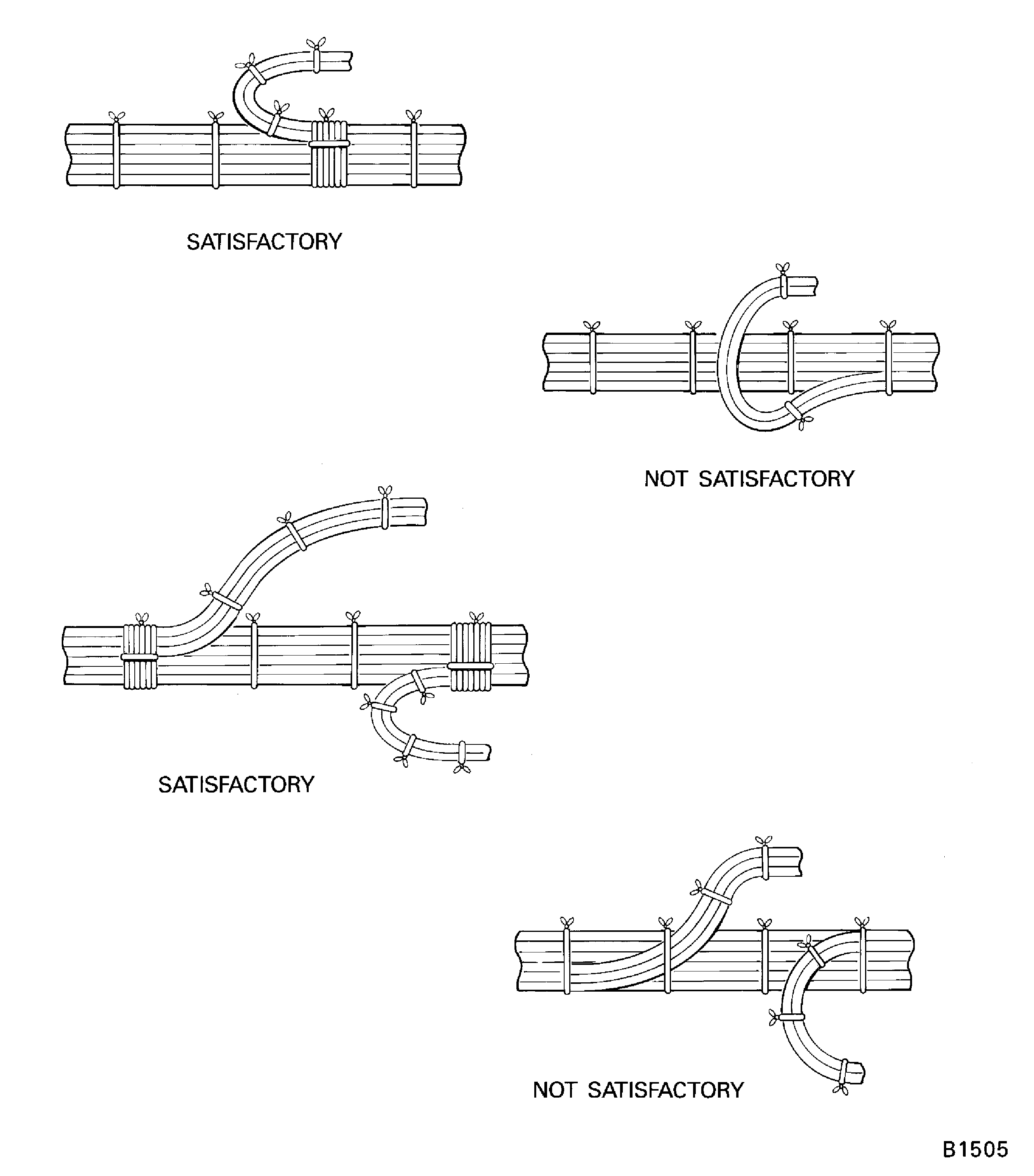 If, during harness installation because of the routing and position of the harness, bulges and gaps are found, in the harness bundle between ties which are more than the average wire diameter, a tie must be made at that point.