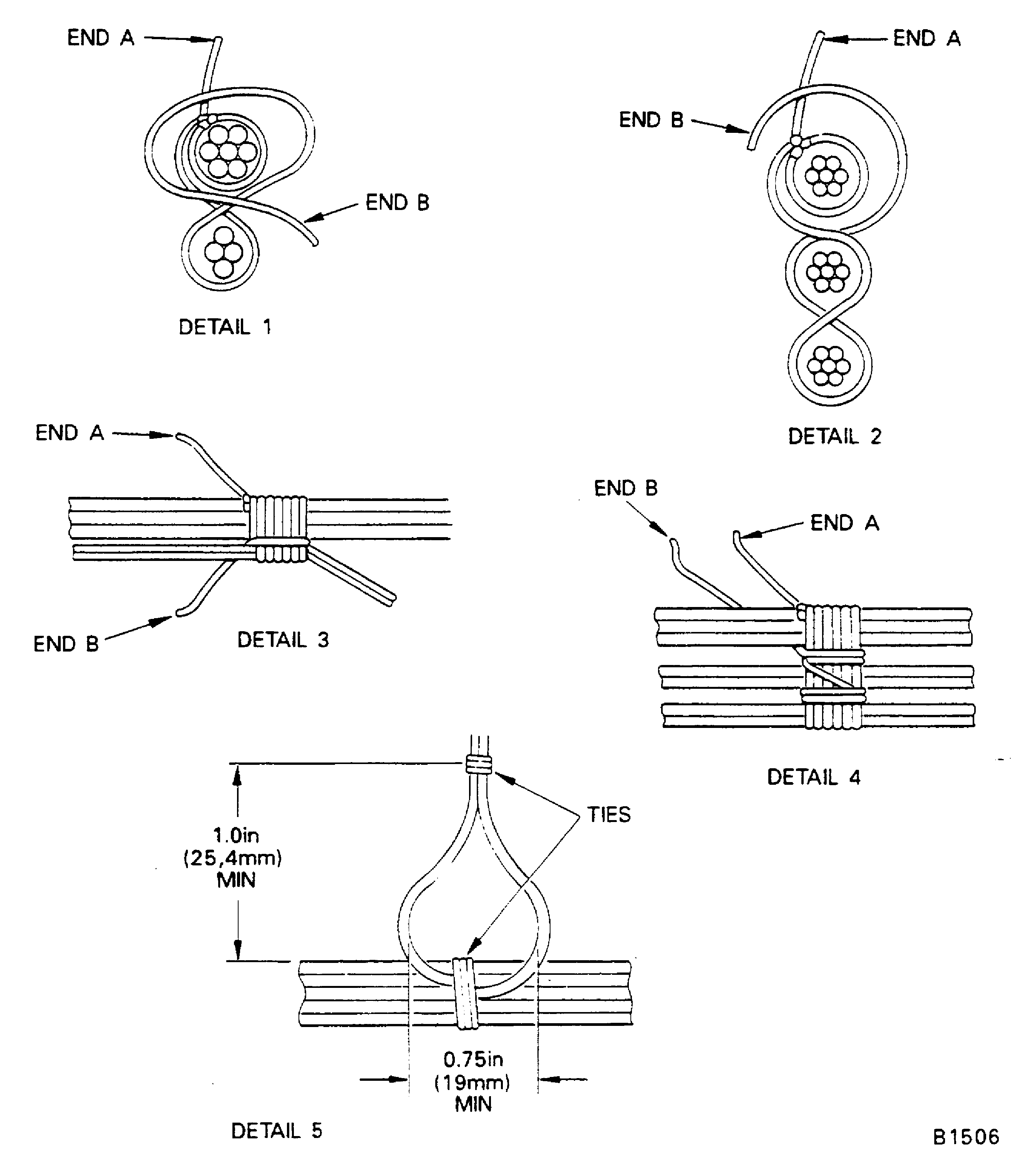 Use the largest bundle of cables, where possible. Put the lacing through the center of the bundle and make a clove hitch - (Refer to Detail-1).