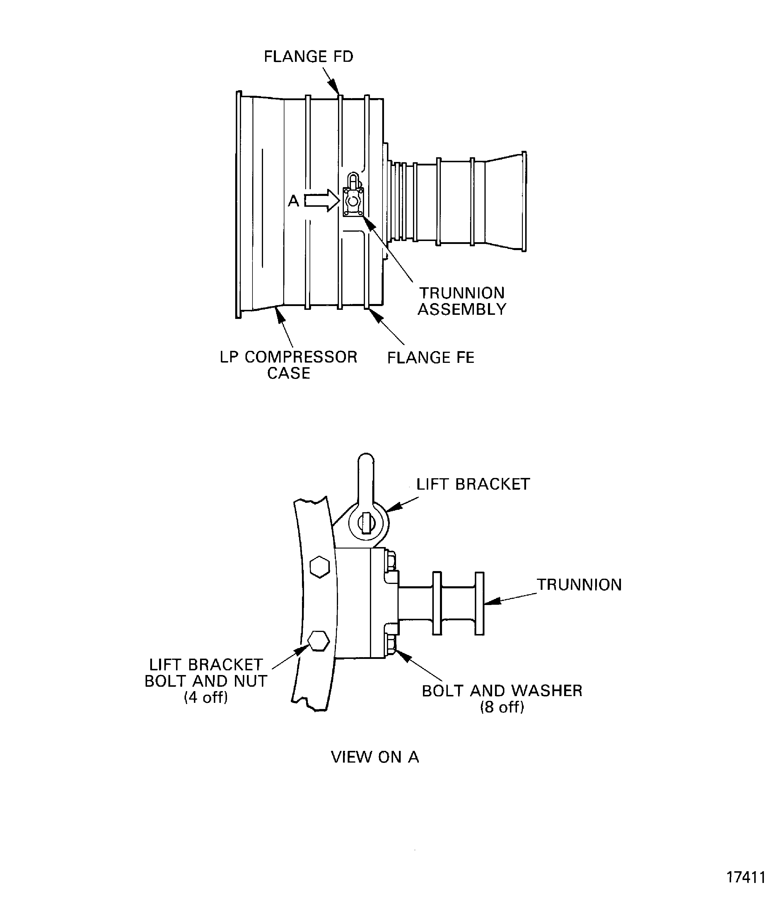 SUBTASK 71-00-00-560-053 Attach the Trunnions and the Lift Bracket to the LP Compressor/Intermediate Case