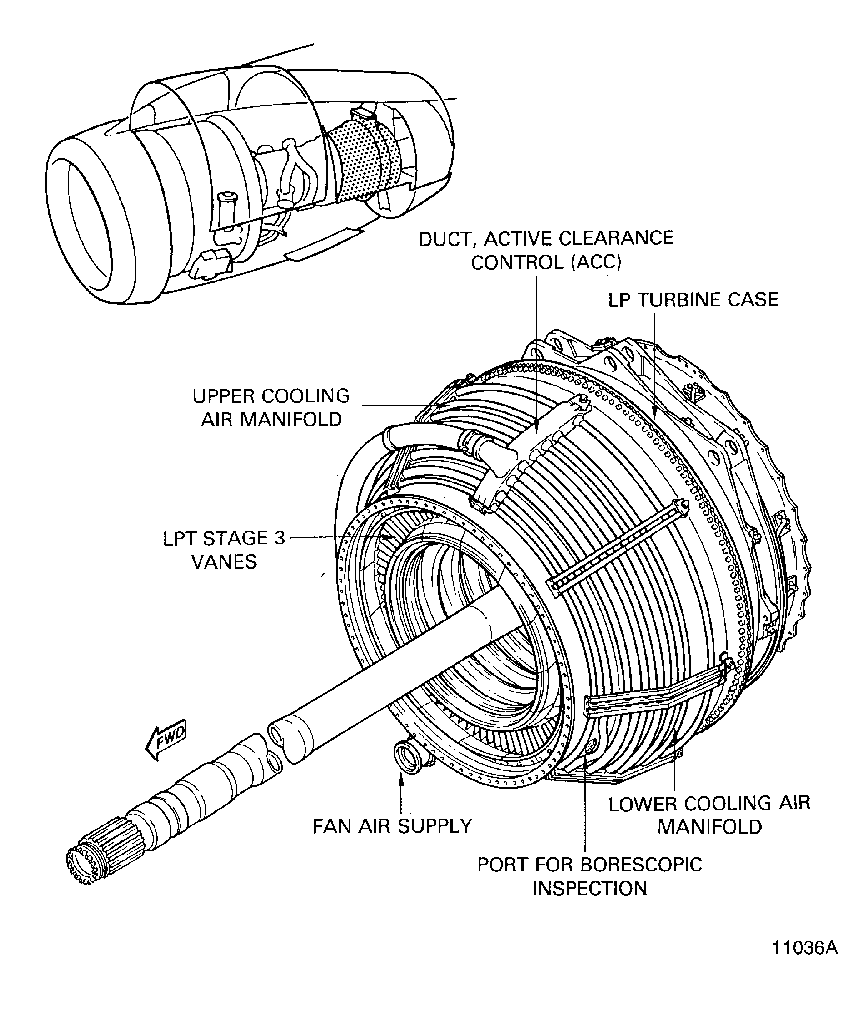 The LPT has a five stage rotor which supplies power to the LP compressor (LPC) through the LPT shaft. The LPT rotor is installed in the LPT case where it is in alignment with the LPT stators. The LPT case is made from high-heat resistant nickel alloy and is a one part, welded assembly.