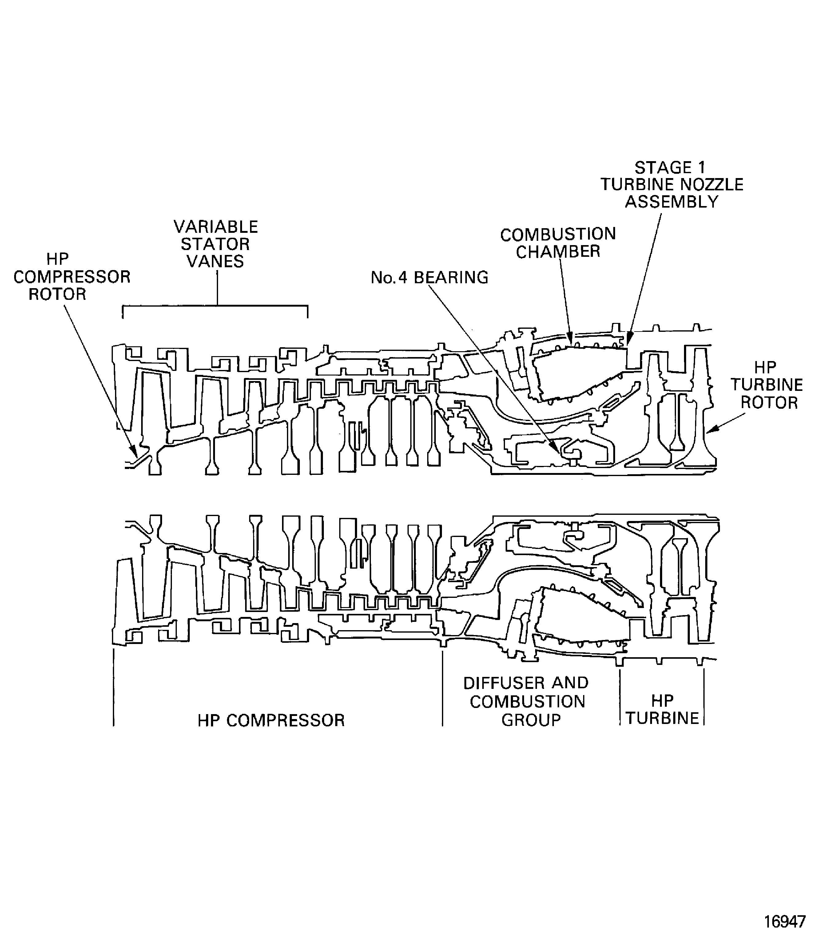 The No.4 bearing front compartment, when assembled with the No.4 bearing and rear compartment, forms an insulated, sealed area for bearing lubrication, support, and protection from high temperatures.