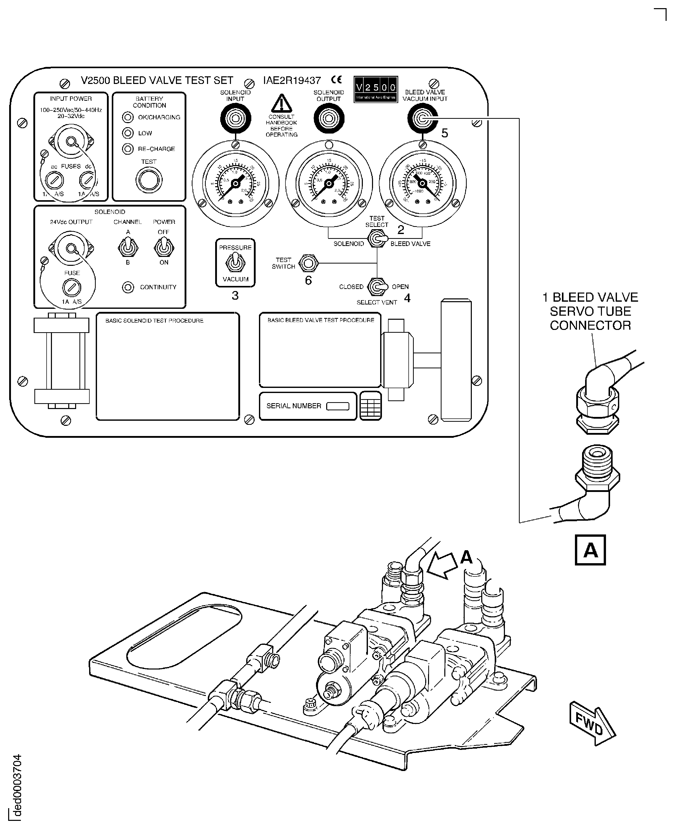 When the test is started, listen carefully for bleed valve operation. Use the stethoscope supplied. If possible, use a torch and a mirror to see bleed valve operation.Push and hold the test set test switch.