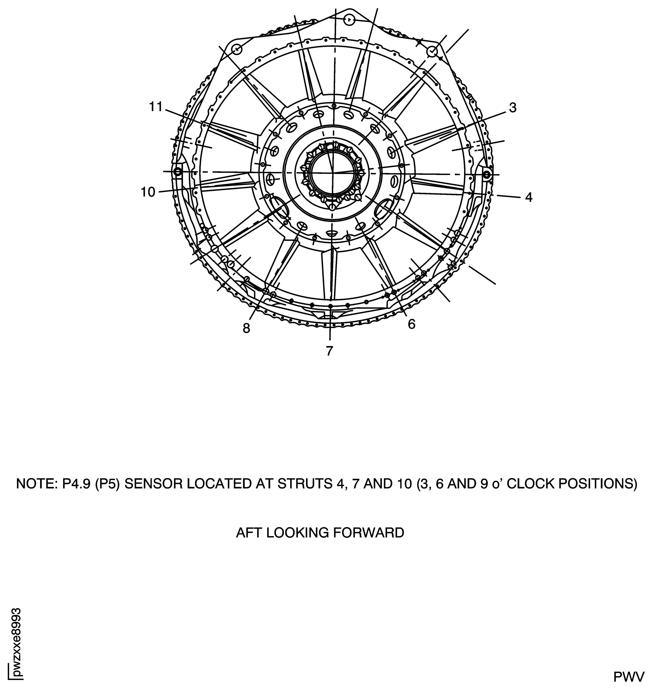 There are three P4.9 (P5) pressure sensing systems located in the turbine exhaust case (TEC) struts numbers 4, 7 and 10 (located at the 3, 6 and 9 o'clock) respectively, aft looking forward. Refer to Figure.