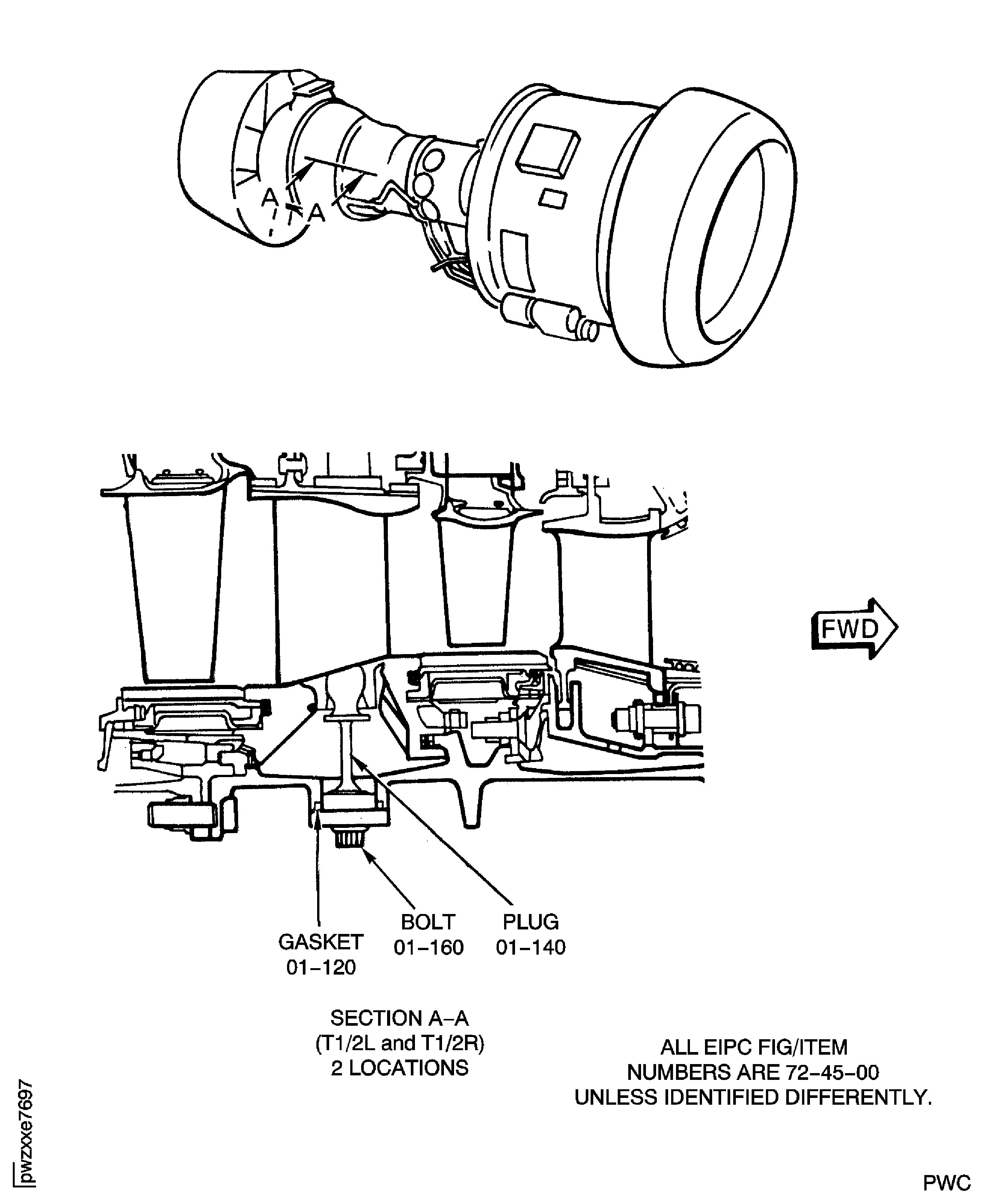 Remove the lockwire and the bolts HP Turbine (HPT) Rotor And Stator Assembly (72-45-00, 01-160) which hold the plugs.