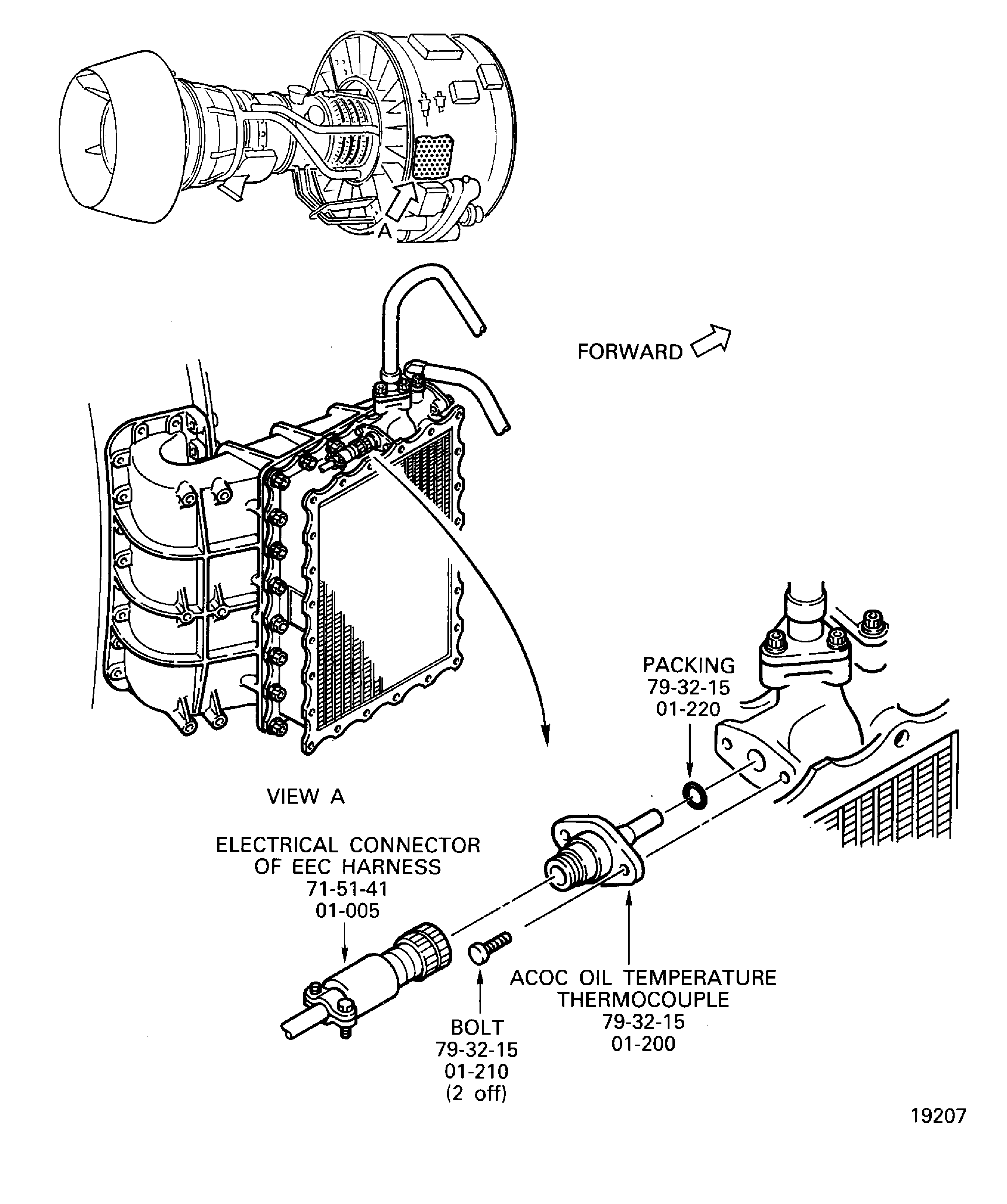 Install the two bolts ACOC Oil Temperature Thermocouple (79-32-15, 01-210).