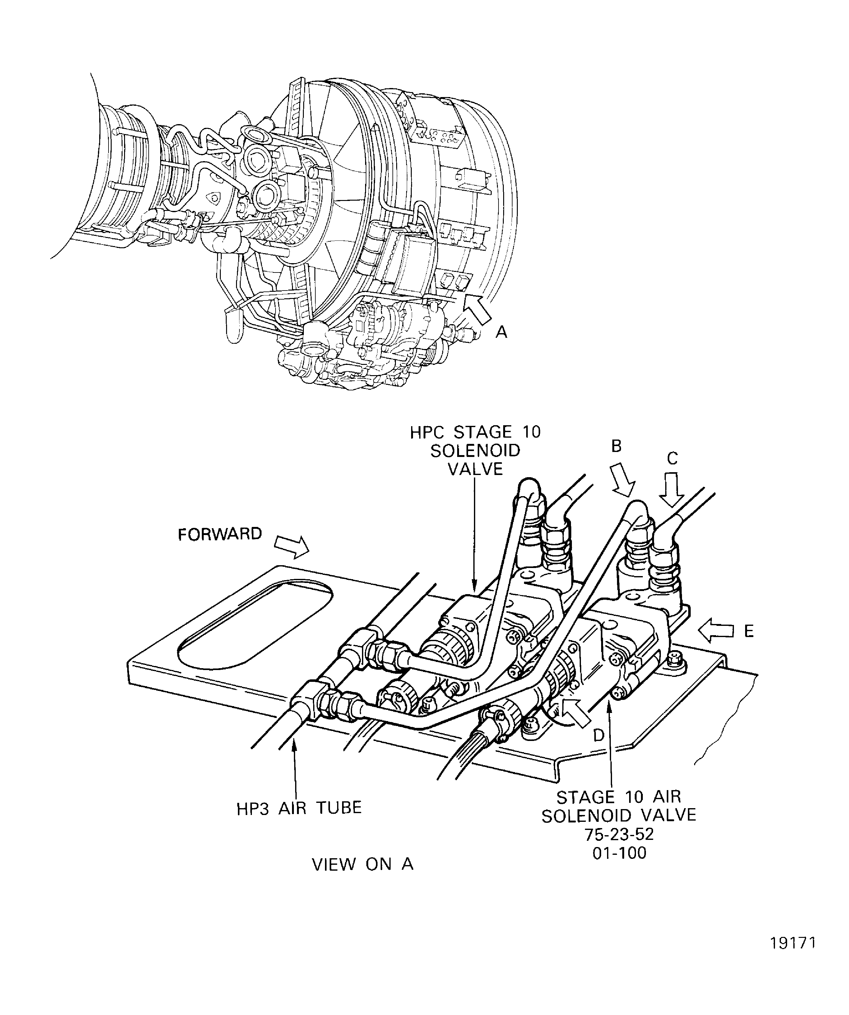 TASK 72-00-32-050-010 LPC/Intermediate Case Module Components - Remove The Stage 10 Air Solenoid Valve 4028KS, Removal-017