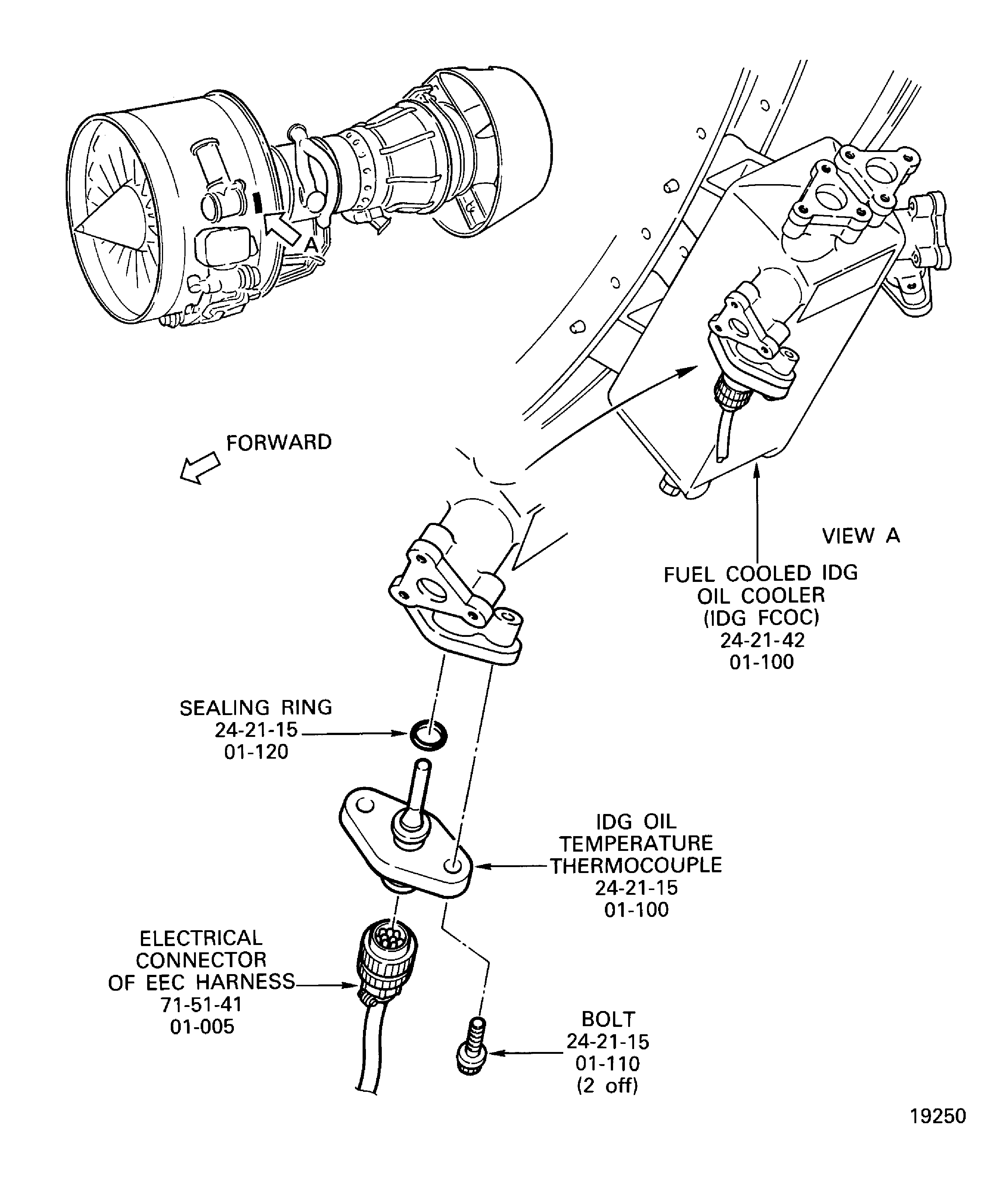 Connect the electrical connector of the EEC harness EEC Fan Harness (71-51-41, 01-005) to the IDG oil temperature thermocouple IDG OIL TEMPERATURE THERMOCOUPLE (24-21-15, 01-100).