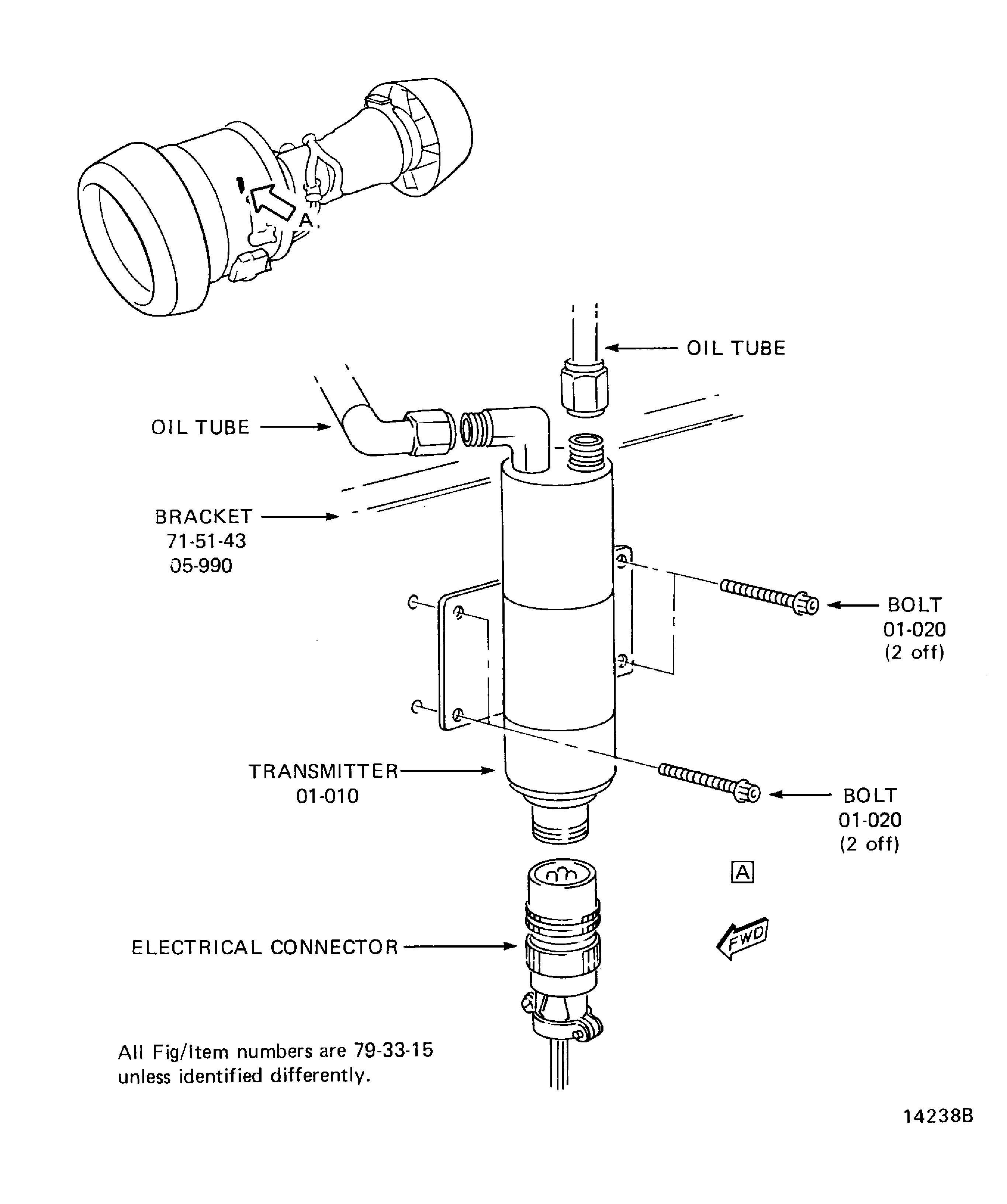 Make a note of the position of the oil pressure transmitter OIL-OIL PRESSURE TRANSMITTER (79-33-15, 01-010), it must be put in the same position on installation.