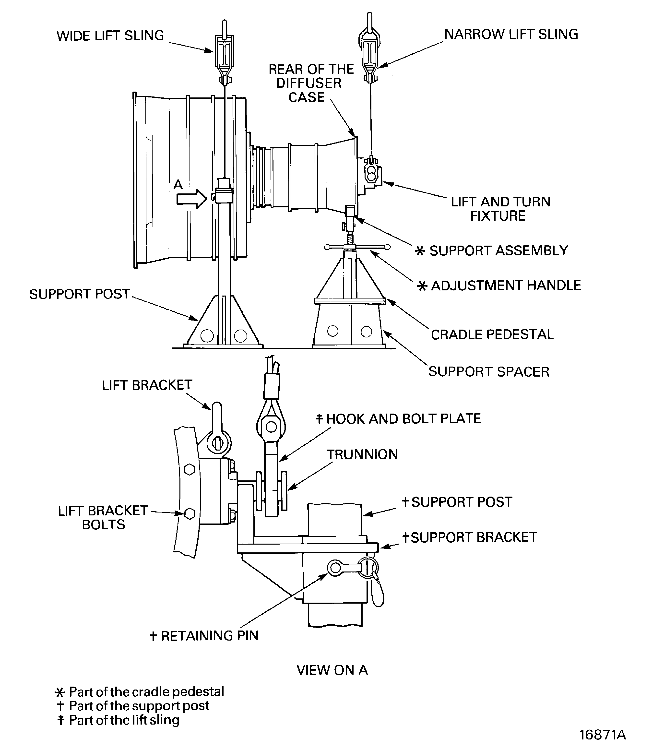 Figure: Remove the lift and turn fixture assembly from the diffuser case rear flange