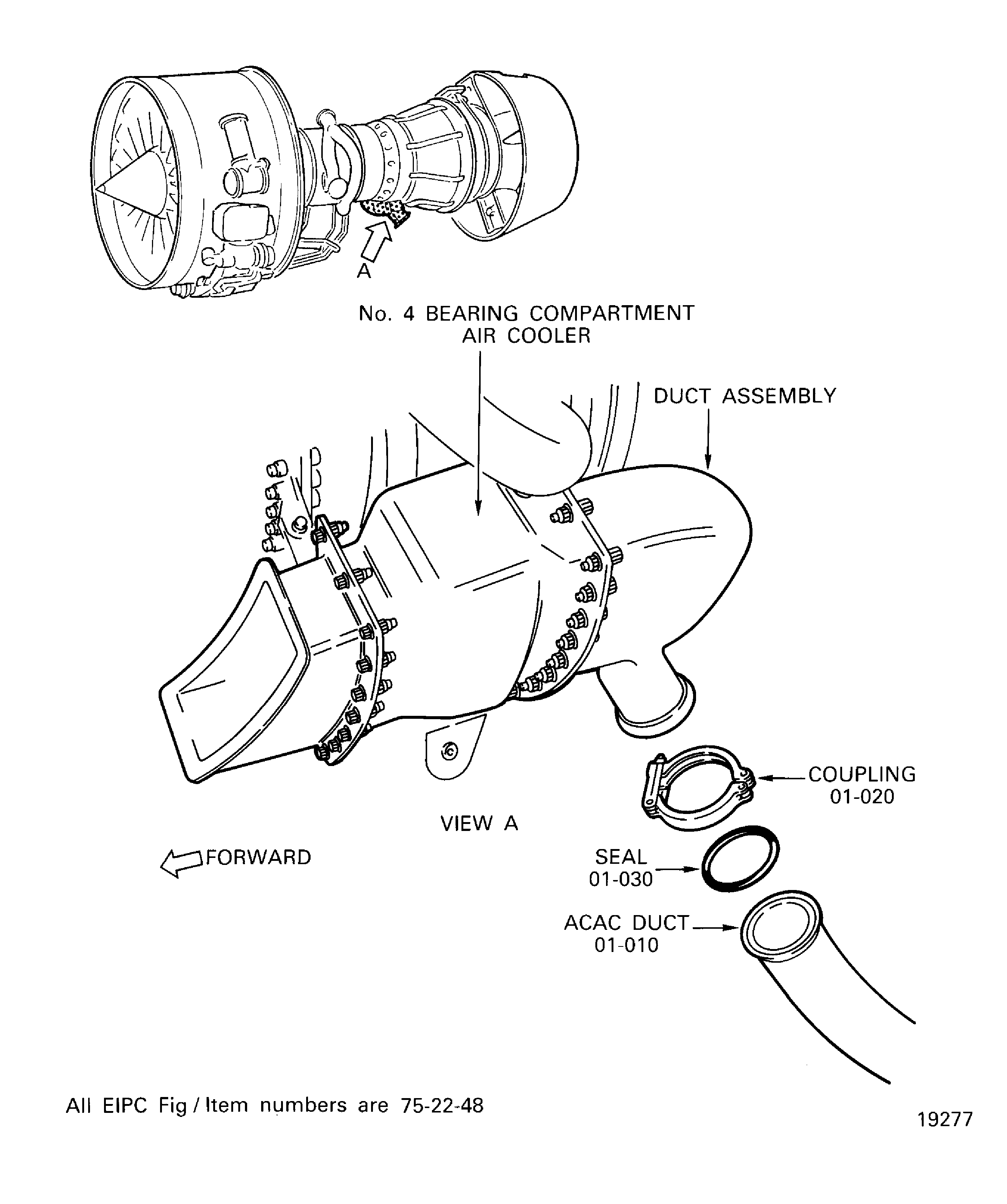 Remove the coupling ACAC Exhaust Duct And Housing (75-22-48, 01-020) and remove the seal ACAC Exhaust Duct And Housing (75-22-48, 01-030).
