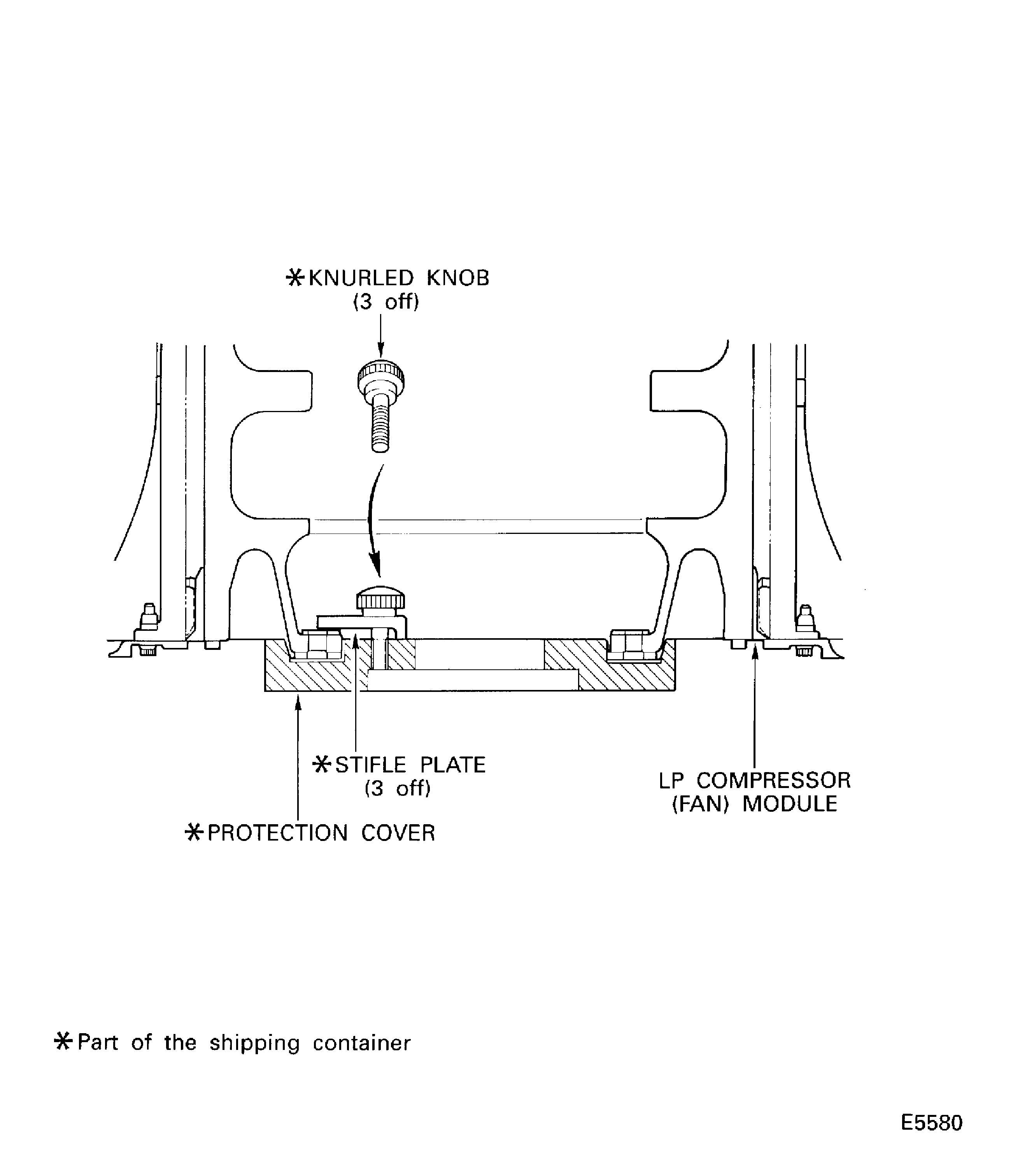 Remove the protection cover (part of the container) from the curvic teeth of the fan disk of the module, Figure.