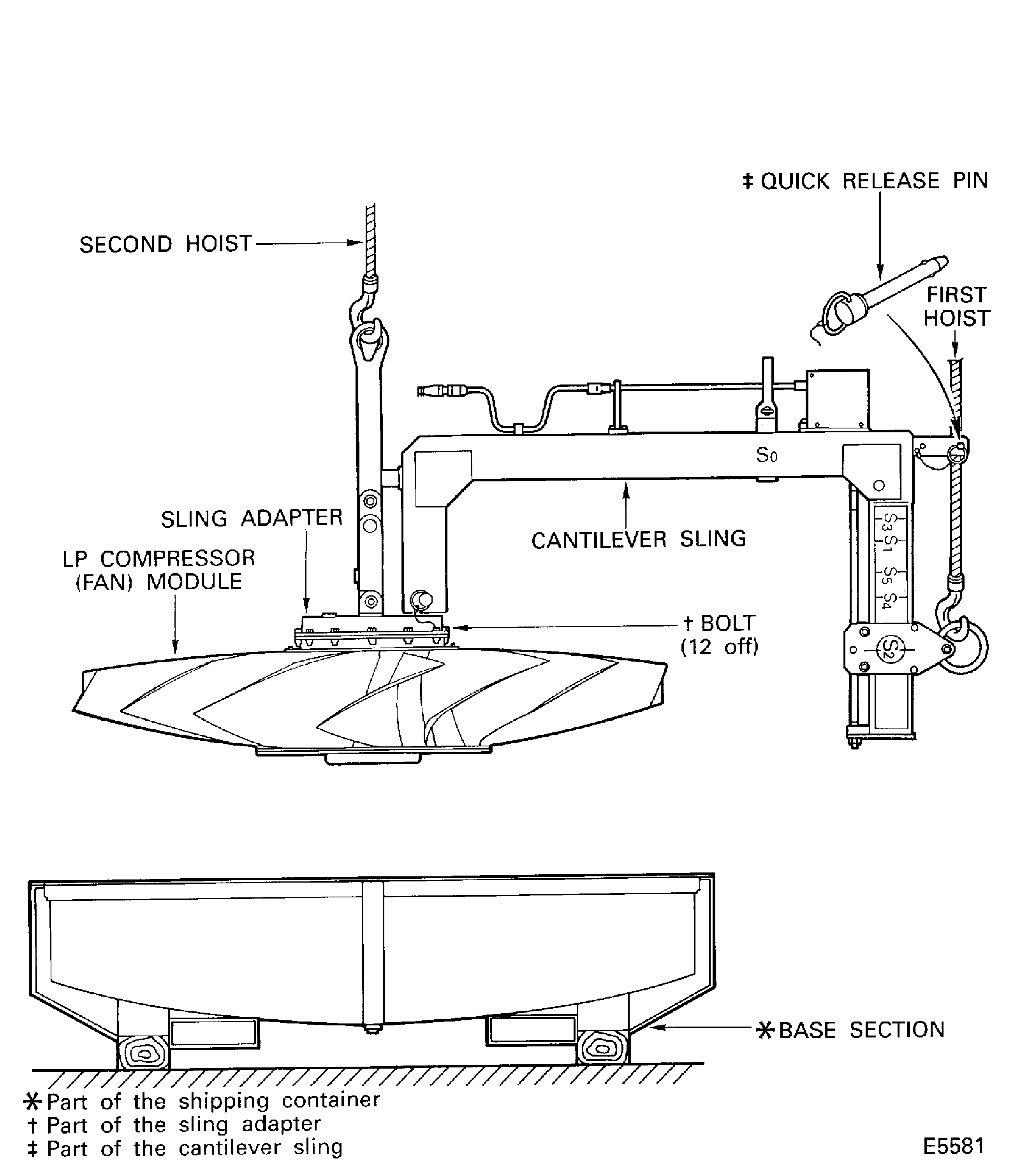 Figure: Install the slinging tools on to the LP compressor (fan) module
