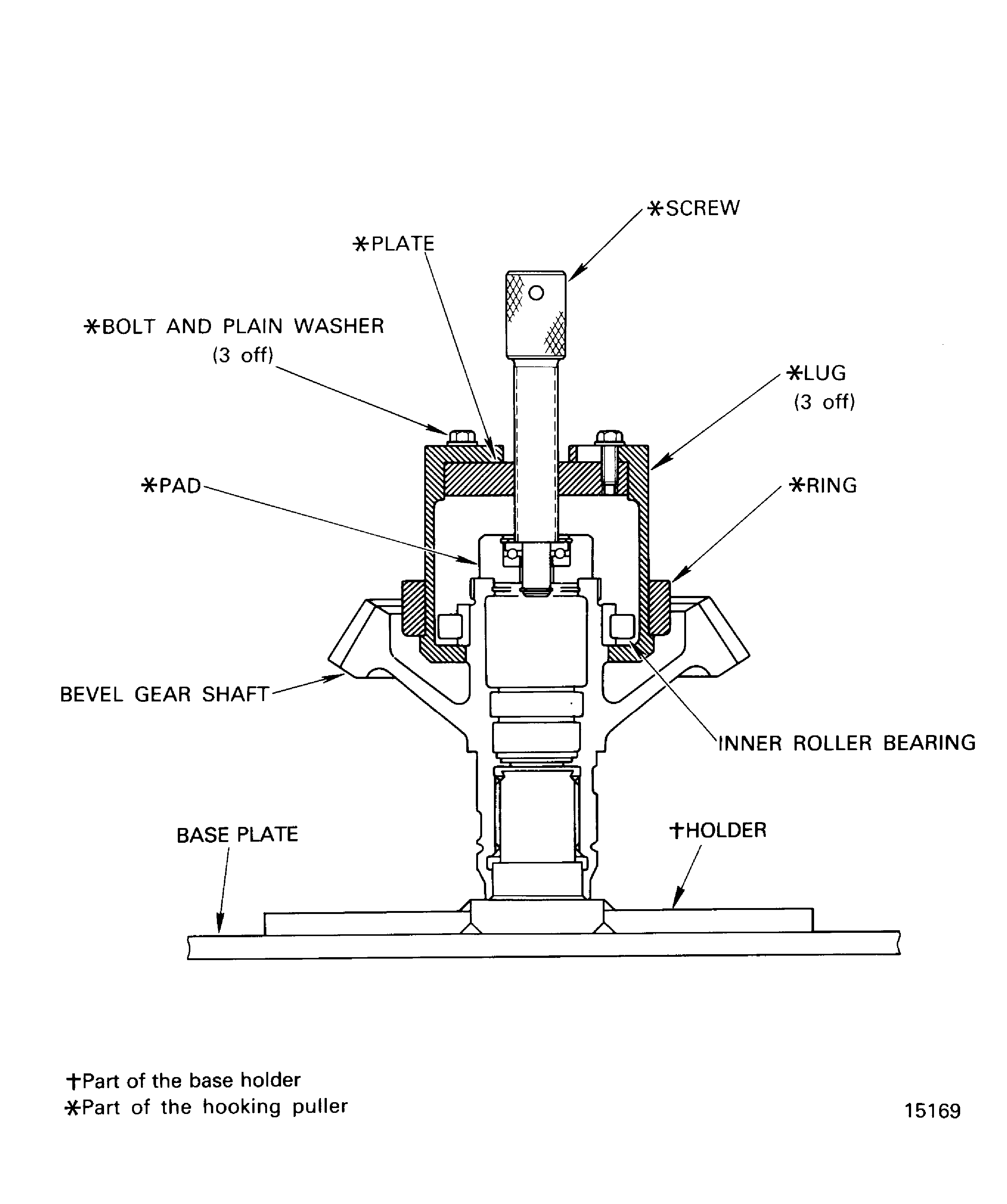 Remove the plain round nut and the cupwasher from the bevel gearshaft.