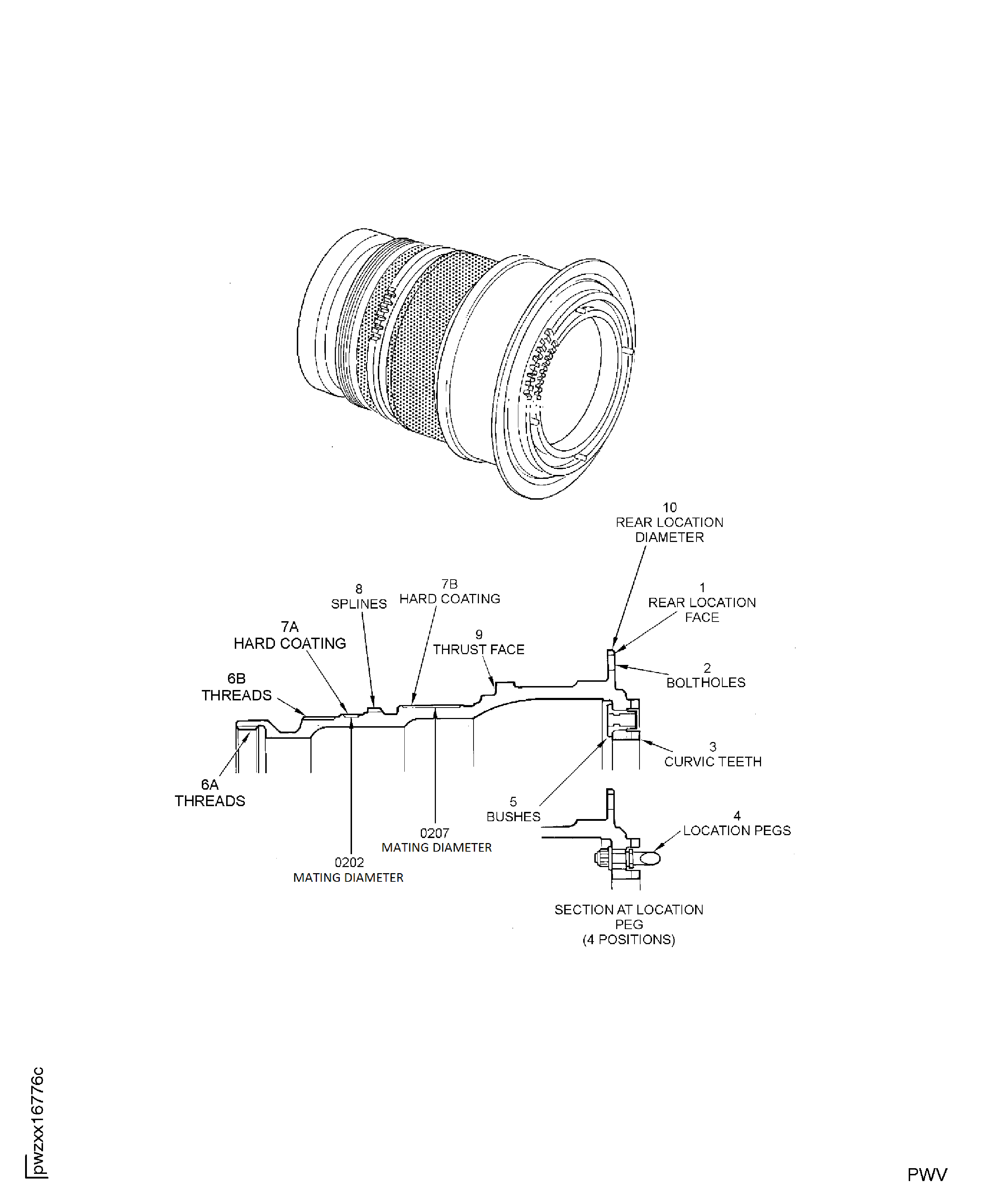 SUBTASK 72-32-23-220-062 Examine the Front Stub Shaft (01-745) Threads at Locations 6A and 6B